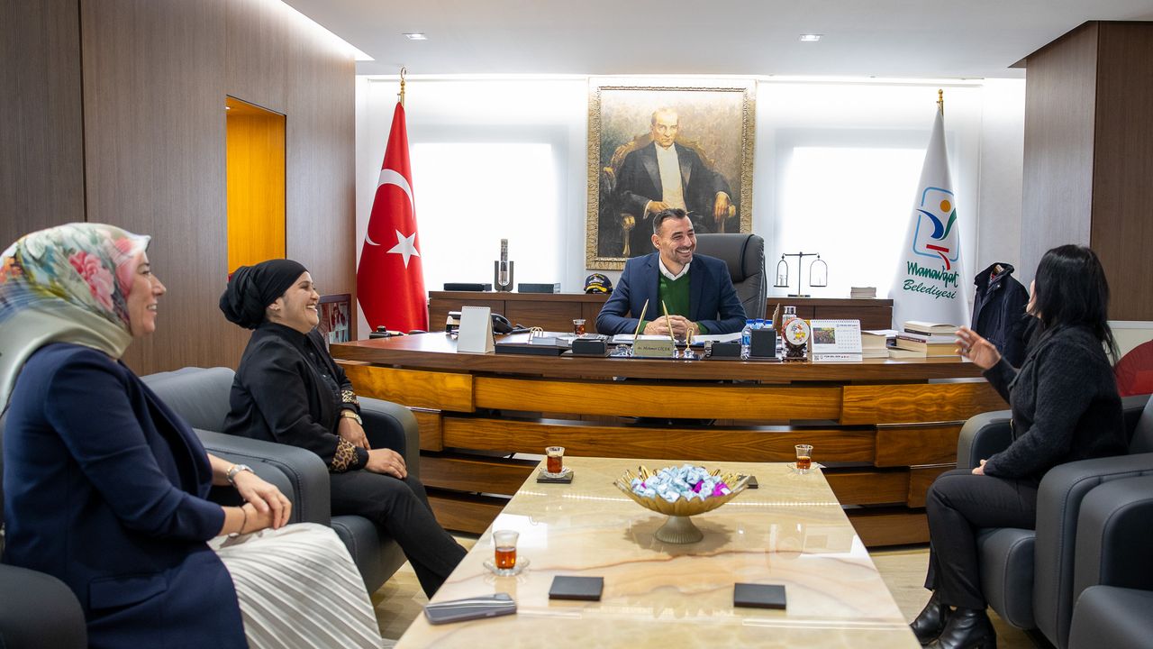 Manavgat Örnek Mahallesi Muhtarı Melek Şahin, Eski Hisar Mahallesi Muhtarı Münevver Çetin ve Kızılağaç Mahallesi Muhtarı Damla Kaya, Manavgat Belediyesi'ni ziyaret etti.