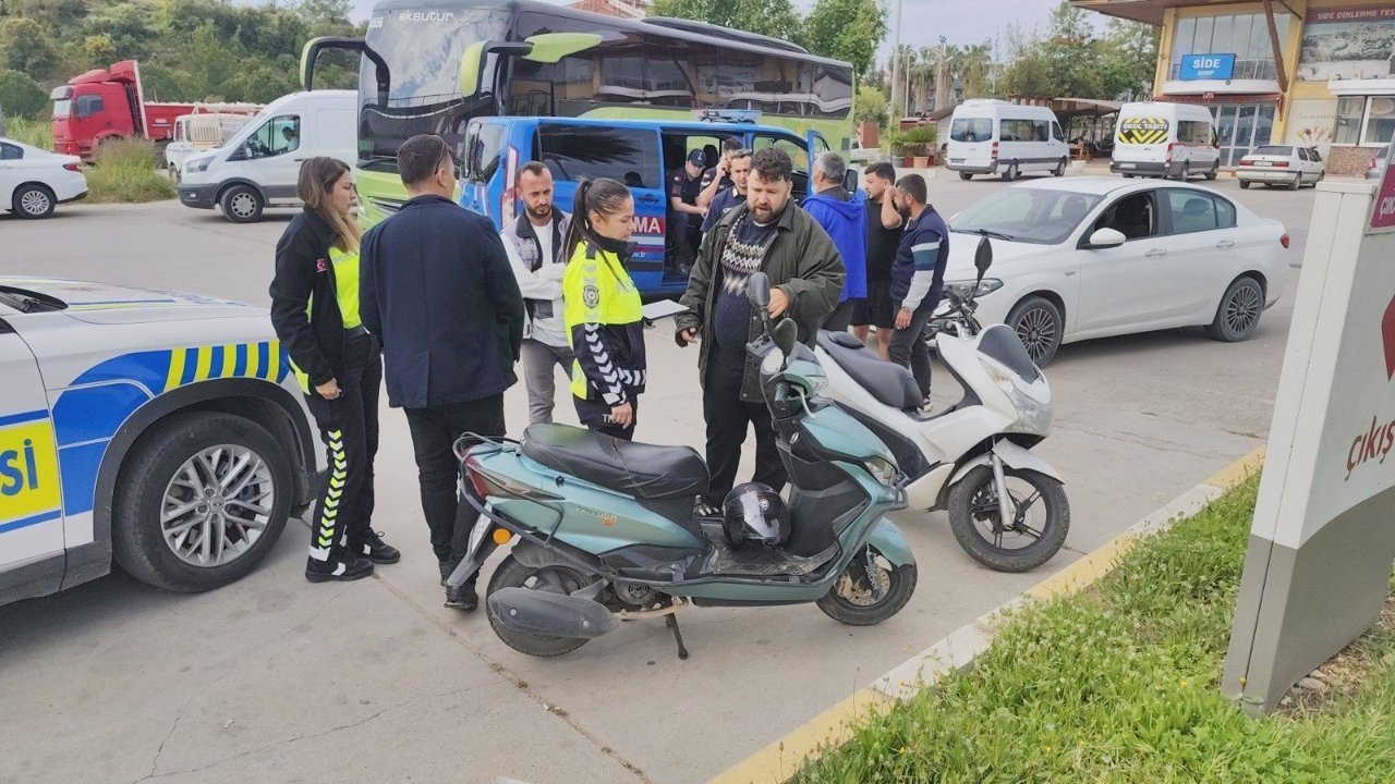 Kaza, Antalya-Alanya D-400 kara yolu Batı Side Köprülü Kavşak yan yolda meydana geldi. Edinilen bilgiye göre, Alanya istikametine seyir halindeki Hilal Y.'nin kullandığı 67 ADJ 062 plakalı motorlu bisiklet, Total kavşağını geçtikten sonra aynı istikamette sağ tarafa dönüş yapmakta olan Nailcan K.'nın kullandığı 07 LN 977 plakalı motosiklete arkadan çarptı. Çarpmanın etkisiyle motosiklet sürücüleri yola savrulurken, vatandaşların ihbarı ile olay yerine polis ve sağlık ekipleri sevk edildi. İlk müdahaleleri olay yerinde yapılarak ambulansla hastaneye kaldırılan yaralı sürücülerin hayati tehlikelerinin bulunmadığı öğrenildi.