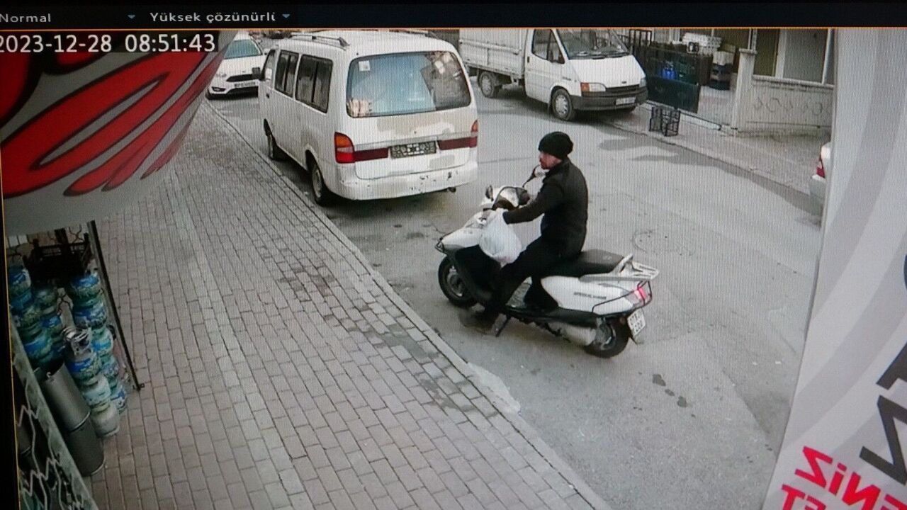Güvenlik kamerasına yansıyan görüntülerde elinde poşet, başında bere olan siyah kıyafetli bir kişinin motosikletin yanına geldiği, biraz ileri gidip çevreyi kontrol ettikten sonra geri dönerek sanki kendi motosikletiymiş gibi motosiklete binip gittiği görüldü.