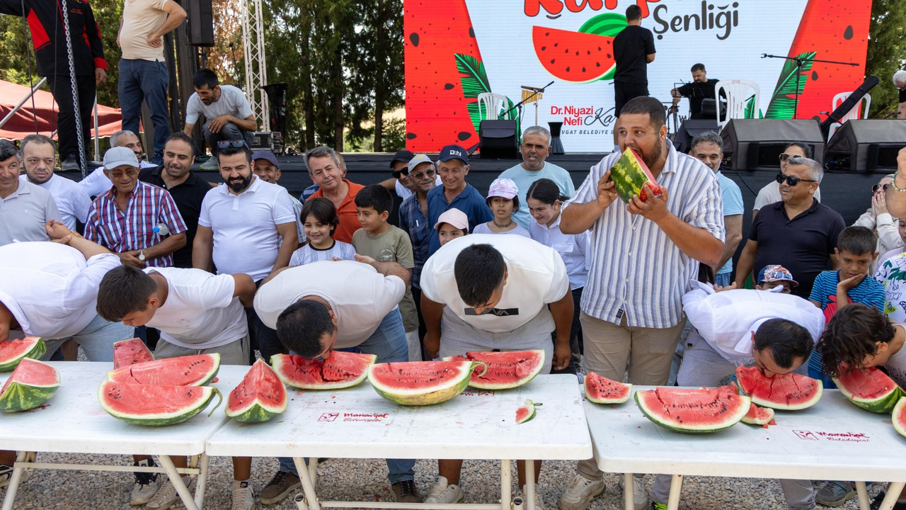 Şenlikte düzenlenen bir diğer renkli etkinlik ise en hızlı karpuz yeme yarışması oldu. Heyecan dolu yarışmanın kazananı Latif Balkan olurken, yarışma alanında hem yarışmacılar hem de izleyenler eğlenceli anlar yaşadı.