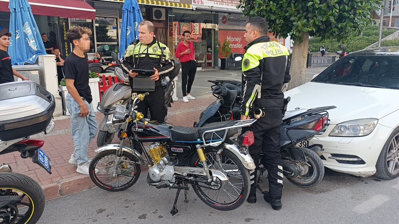 Antalya Caddesi'nde gerçekleştirilen uygulama sırasında trafik ekiplerinin 'dur' ihtarına uymayarak kaçmaya çalışan motosiklet sürücüsü genç kız, uygulama noktasına 50 metre uzaklıktaki kırmızı ışığın yanmasıyla araçlar arasında durmak zorunda kaldı. Genç kızın yanına giden trafik polisi, motosikletli genç kız ile birlikte uygulama noktasına geldi. Sürücü belgesi olmadığı için kaçmaya kalkıştığı belirlenen genç kıza sürücü belgesiz araç kullanmaktan 18 bin 677 TL, kask takmamaktan 933 TL, motosiklet sahibine de sürücü belgesiz kişiye araç kullandırmaktan 18 bin 677 TL olmak üzere toplam 32 bin 347 TL para cezası uygulandı.