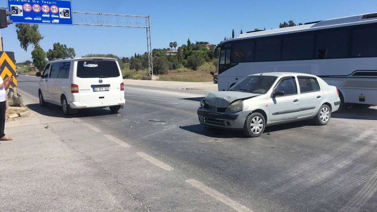 Kaza, Alanya-Manavgat D-400 Kara yolunda dün meydana geldi. Murat T.'nin kullandığı 07 BFM 152 plakalı tur aracı, Yusuf K.'nın kullandığı 07 LTK 08 plakalı otomobille çarpıştı. Kazada, 07 LTK 08 plakalı otomobilde yolcu olarak bulunan K.N.K. (7) ve E.H.K. (12) yaralandı. Yaralı çocuklar, 112 sağlık ekibinin olay yerindeki müdahalesinin ardından ambulansla Manavgat Devlet Hastanesi'ne kaldırıldı. Yaralıların hayati tehlikesinin bulunmadığı bildirildi.