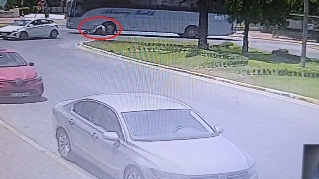 Güvenlik kameralarına saniye saniye yansıyan kazada, motosiklet otobüs lastiğinin altına girerken, sürücü ise kendisini yola doğru atlayarak kurtardı. Otobüs firmasına ‘otogar dışında yolcu indirmek' ve sürücüsüne de ‘döner kavşakta dönüş kuralına uymamak' suçlarından toplam 5 bin 882 TL para cezası uygulandı.
