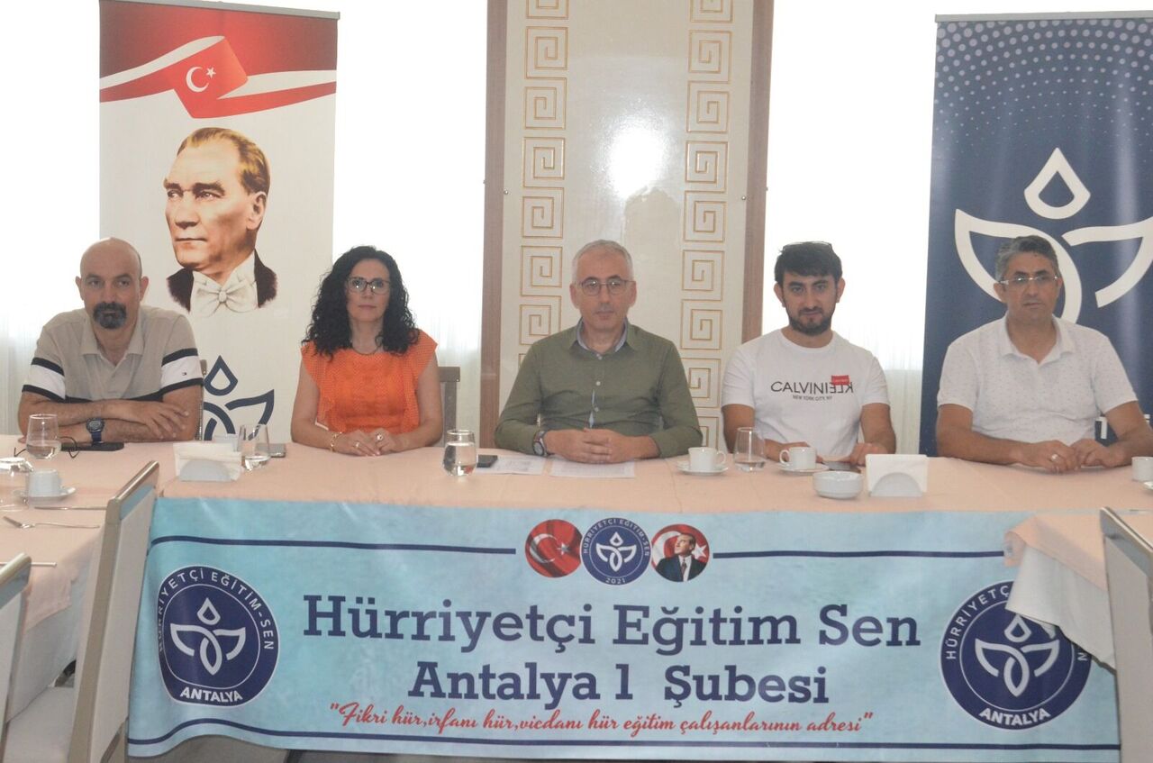 Hürriyetçi Eğitim Sen Antalya Şubesi, eğitim sistemindeki aksaklıklar, okullardaki problemler ve atama konularındaki sıkıntıları dile getirmek amacıyla bir basın toplantısı düzenledi. Toplantıda konuşan şube başkanı Hilmi Taner, okullardaki temizlik sorunundan, ücretli öğretmenlere kadar birçok konuda açıklamalarda bulundu. Taner özellikle norm fazlası öğretmenlerin çokluğuna rağmen ücretli öğretmenlikle ile kamunun daha fazla maddi yük altına girdiğini ifade etti.