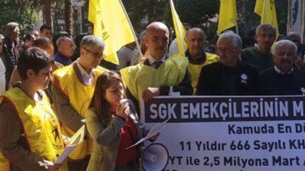 Yapılan saygı duruşunun ardından konuşan Büro Emekçileri Sendikası Antalya Şubesi Başkanı Devrim Mol ' EYT'lilerin yıllardır beklediği düzenlemeleri içeren Sosyal Sigortalar ve Genel Sağlık Sigortası Kanunu ile 375 sayılı Kararnamede Değişiklik Yapılmasına Dair Kanun Teklifi, TBMM Genel Kurulunda kabul edilerek yasalaştı. SGK da yılda ortalama 400 bin civarında emeklilik işlemi gerçekleştiriliyor ve bu yasadan 2 milyon 500 bin EYT'linin faydalanması bekleniyor. Henüz düzenleme kamuoyu ile paylaşılmadan 1 Ocakta hizmet borçlanmasına asgari ücrete gelen zam oranında artış olacağını duyan mağdurlar sosyal güvenlik merkezlerinin önünde uzun kuyruklar oluşturmuş, borçlanma taleplerini gerçekleştirmişlerdi. Bu durum dahi SGK çalışanlarının iş yükünü 2-3 kat artırırken, emeklilik taleplerinin başlaması ile tüm sosyal güvenlik merkezleri önü mahşeri kalabalığa dönüşmüş, yaşanan yoğunlukla beraber hem vatandaşlar mağdur edilmiş hem de SGK emekçilerinin iş yükü katmerlenerek artmış, daha da artacağı görülmektedir' dedi.