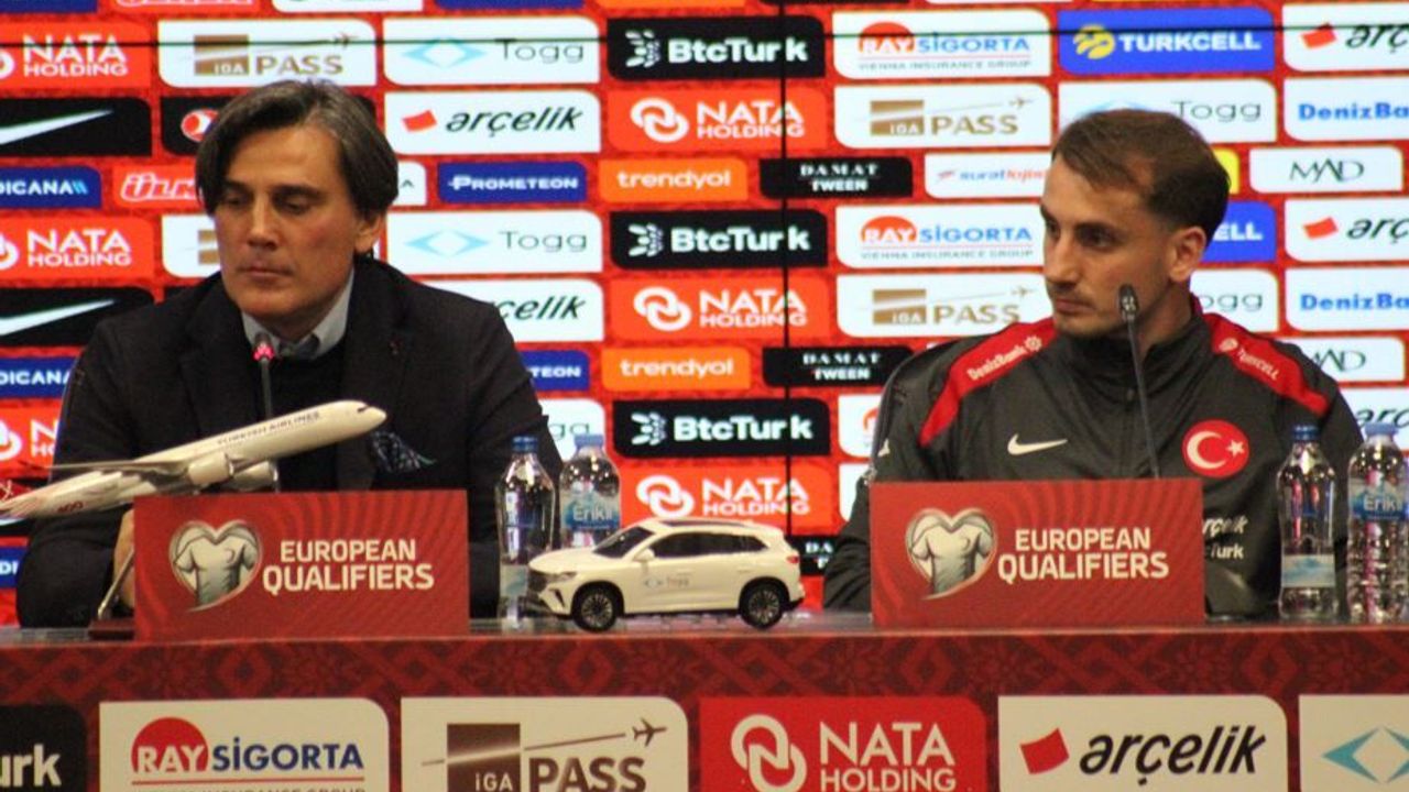 2026 Dünya Kupası Avrupa Elemeleri E Grubu dördüncü maçında yarın Kocaeli'de Gürcistan ile karşılaşacak A Milli takımda teknik direktör Vincenzo Montella ile futbolculardan Kerem Aktürkoğlu basın toplantısı düzenledi. Kocaeli Stadı'nda düzenlenen basın toplantısında konuşan Montella, Berke Özer'in kamptan ayrılmasına ilişkin “Futbolcuların arasındaki grupta hep aile ortamı var diyoruz ama bunu sadece söylemiyoruz, gösteriyoruz. Burada olma arzusuyla bunu başarıyoruz. Futbolcular her zaman Milli Takım için mücadele vermek zorunda. Milli Takım için her şeyimizi ortaya koymalıyız. Benim görevim en iyi futbolcuları seçmek. Bu seçimleri yaparken maçtan maça en iyisini yapmaya çalışıyoruz. O yüzden bu duruma baktığımızda ben her zaman sorumluluk alıyorum ve teknik karar veriyorum. Böyle durumlarda futbolcular da sorumluluk almalı. Futbolcuları belirlerken karar vermiştim. Berke Özer, yayınladığı açıklamada, teknik kararlara da karşı geldiğini söylemiş oldu” diye konuştu.