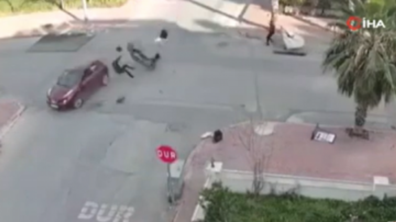 Kaza, dün 17.40 sıralarında Konyaaltı ilçesi Gürsu Mahallesi'nde yaşandı. Edinilen bilgiye göre, sürücü isimleri öğrenilemeyen otomobil ve motosiklet, kavşağa geldiği sırada çarpıştı. Çarpmanın şiddetiyle motosiklet sürücüsü, başındaki kaskı ve motosikletin parçaları etrafa savruldu. Yere düşen motosiklet sürücüsünün yardımına ise o sırada yol kenarından geçen atık toplayıcı bir kişi koştu.