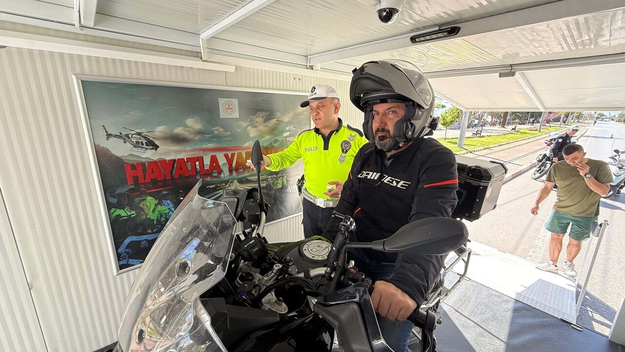 Motorlu taşıt sayısında ilk sırada yer alan ve çok sayıda motosiklet kazasının yaşandığı Antalya'da, motosiklet kullanımına yönelik denetimler artırılıyor. Motosiklet kaynaklı kazaların önüne geçmek amacıyla Türkiye'de ilk kez Antalya'da uygulamaya konulan ve tanıtımı geçen haftalarda Antalya Valisi Hulusi Şahin tarafından yapılan 'Motosiklet Kullanıcısı Eğitim İstasyonu Trafik Mobil Karavanı' şehrin sokaklarında trafik polislerinin kullanımına sunuldu.