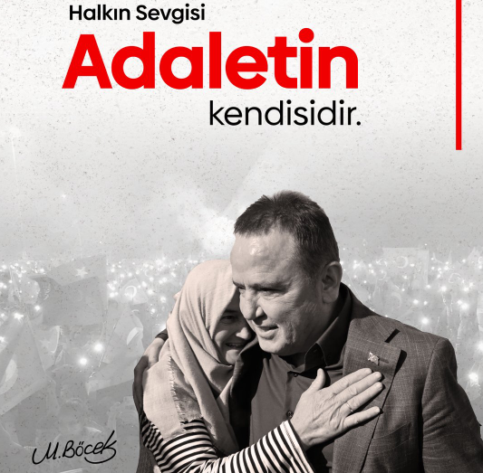 Başkan Böcek, mektubunda adalete olan inancını şu sözlerle ifade etti: "Halkın sevgisi adaletin kendisidir." Mesajında, haksızlık karşısında susmayan bir yoldan geldiğini belirten Böcek, bu yolun ‘inançla, güvenle, sabırla ve dayanışmayla’ örüldüğünü söyledi.
