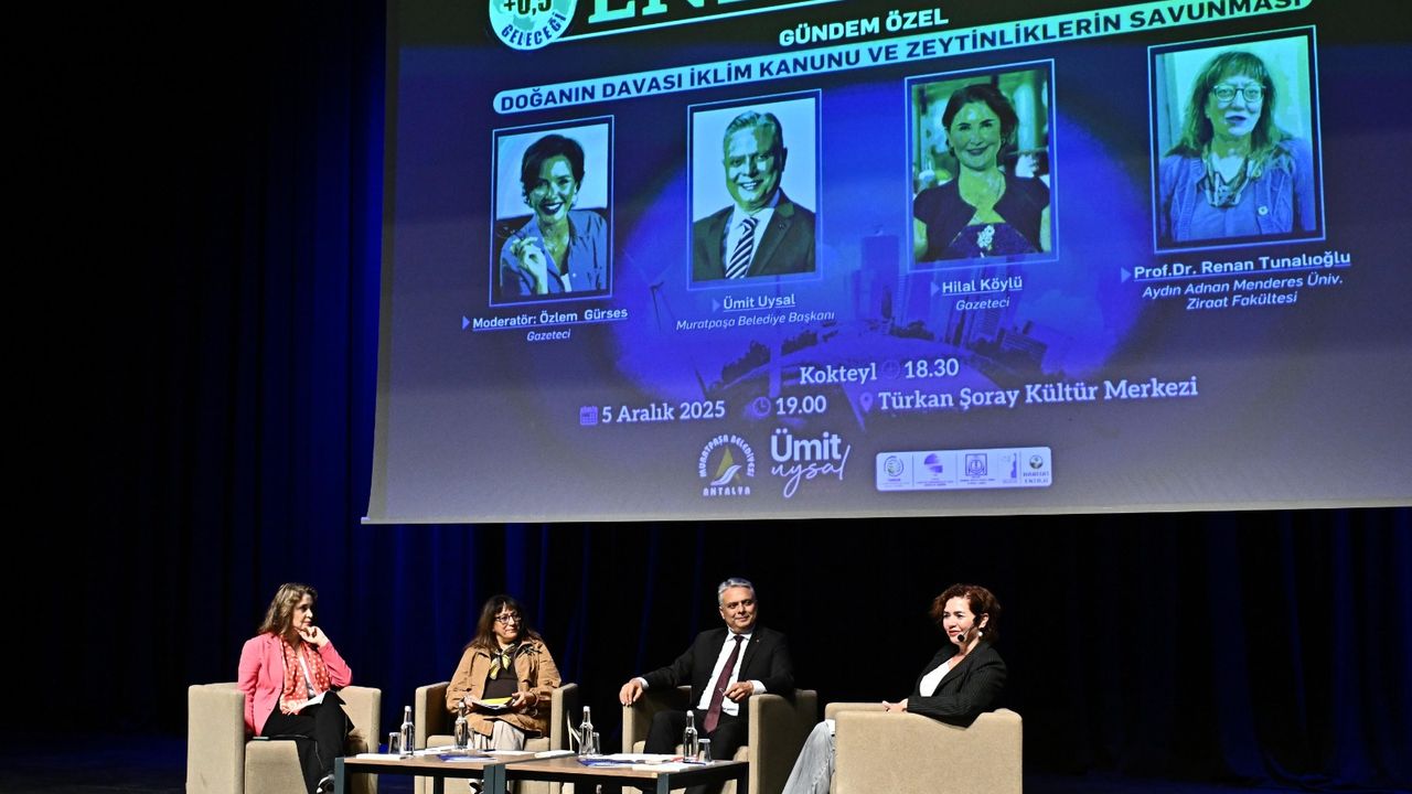 Muratpaşa Belediyesi'nin "Enerji: Güneşi, Rüzgârı ve Dalgaları Paylaşmak" temasıyla bu yıl 5'incisini düzenlediği +0.5 Akdeniz'in Geleceği Çalıştayı kapsamında Türkan Şoray Kültür Merkezi'nde gazeteci Özlem Gürses moderatörlüğünde "Doğanın Davası: İklim Kanunu ve Zeytinliklerin Savunması" başlıklı Gündem Özel oturumu gerçekleştirildi