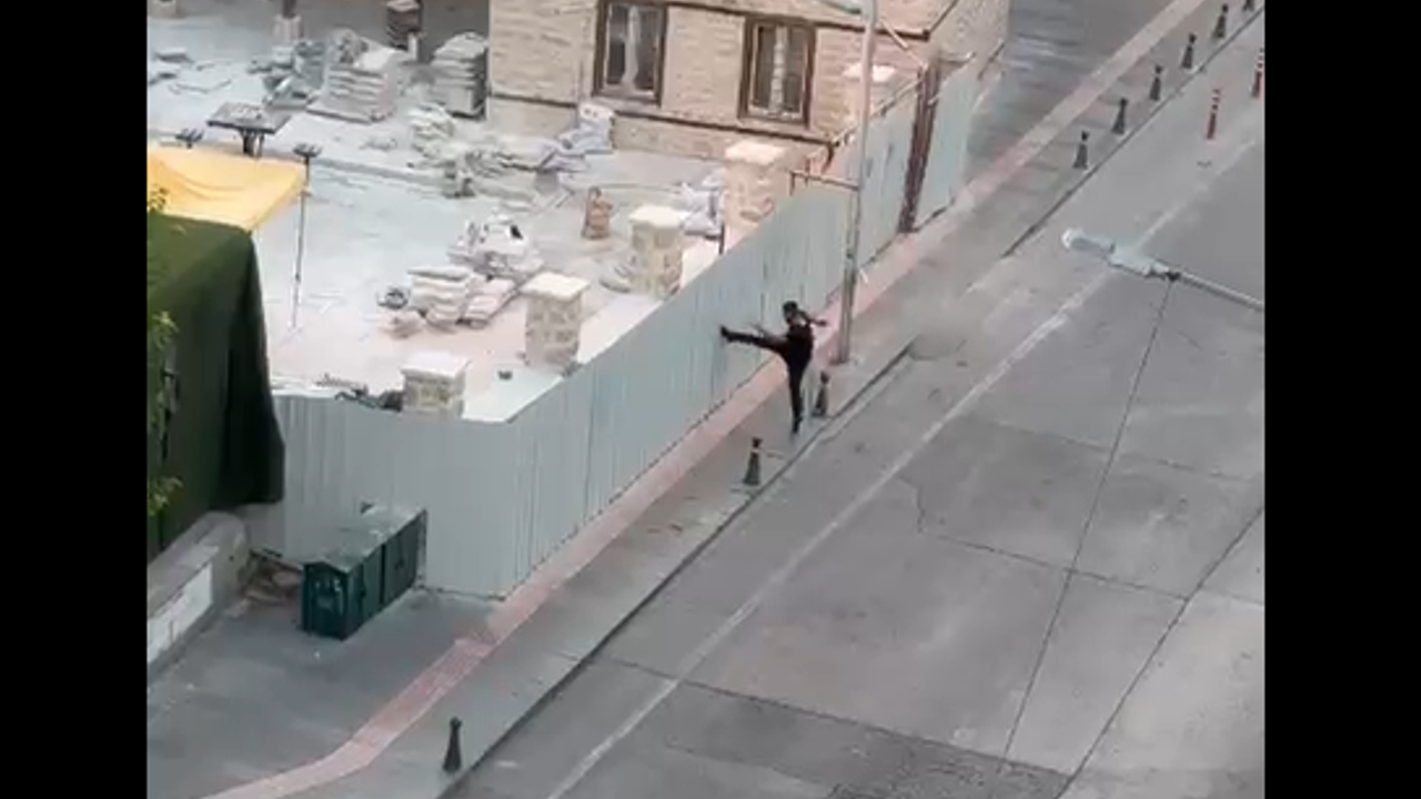 Antalya’nın Muratpaşa ilçesi Şehit Binbaşı Cengiz Toytunç Caddesi’nde sabah saatlerinde ilginç görüntüler yaşandı. Cep telefonu kameralarına yansıyan anlarda, alkol ya da madde etkisinde olduğu öne sürülen bir şahıs cadde üzerinde kendi kendine bağırarak yürüdü. Çevreye rahatsızlık veren şahsın zaman zaman çevresindekilere ve yol kenarındaki araçlara tekme attığı görüldü.