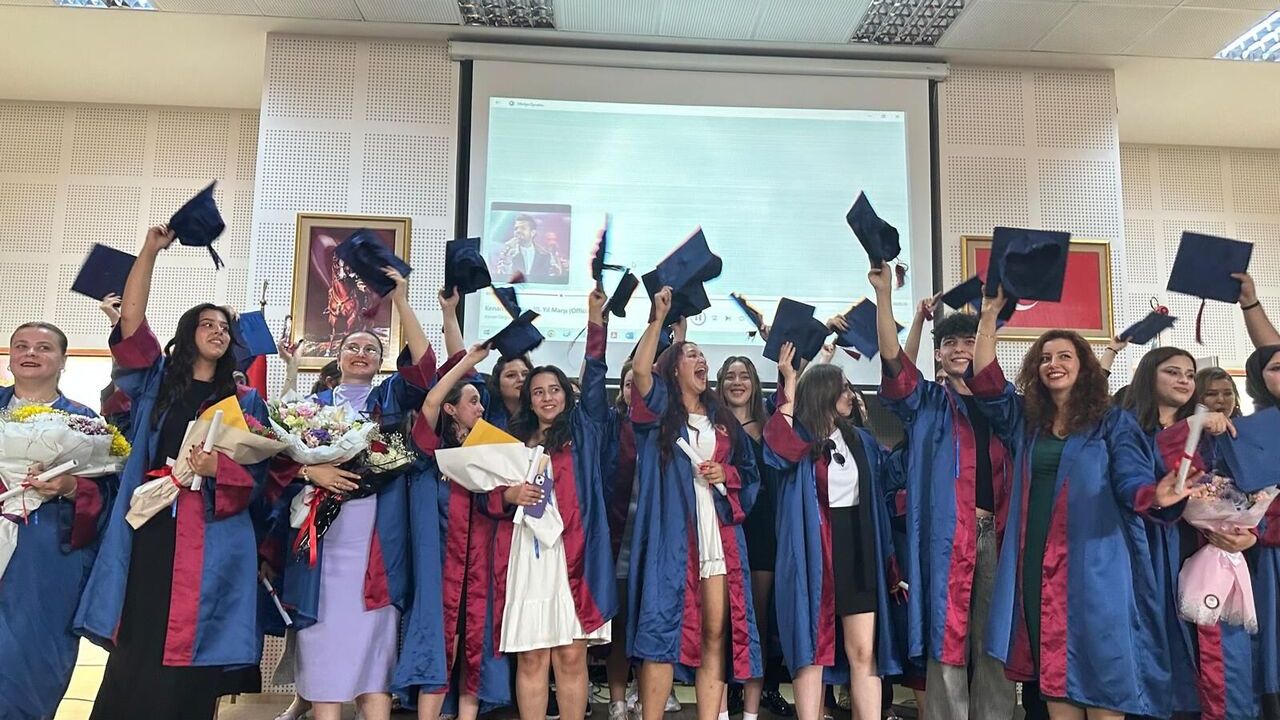 Başarı belgelerini Başkan Yardımcısı Semih Top ve beraberindekilerin elinden alan öğrenciler, törenin sonunda kep atarak okuldan mezun olmanın gururunu yaşadı.