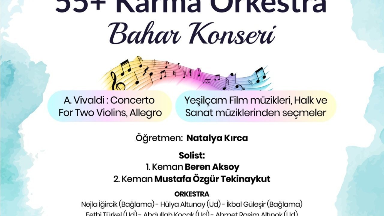 Konyaaltı Belediyesi bünyesinde hizmet veren Müzik Akademisi’nde verilen sanat eğitimleri devam ediyor. Akademide eğitim alan sanatseverler, gerçekleştirilen konserlerde yeteneklerini gösterme fırsatı yakalıyor. Konyaaltı Belediyesi bu kapsamda iki konseri daha vatandaşlarla buluşturmaya hazırlanıyor. Yapılan duyuruya göre, “55 Yaş Üzeri Karma Orkestra Bahar Konseri” 17 Nisan Cuma günü saat 19:00’da Konyaaltı Belediyesi Müzik Akademisi Konser Salonu’nda gerçekleştirilecek. Konserde A. Vivaldi: Concerto, For Two Violins, Allegro, Yeşilçam film müzikleri, halk ve sanat müziklerinden seçmeler seslendirilecek. Müzik Akademisi’nin bir diğer konseri olan “Duygu Dikmen Özçelik Piyano Öğrencileri Konseri” ise 19 Nisan Pazar günü saat 14:00’te aynı noktada müzikseverleri ağırlayacak. Vatandaşlar her iki konsere de hiçbir ücret ödemeden katılabilecek.
