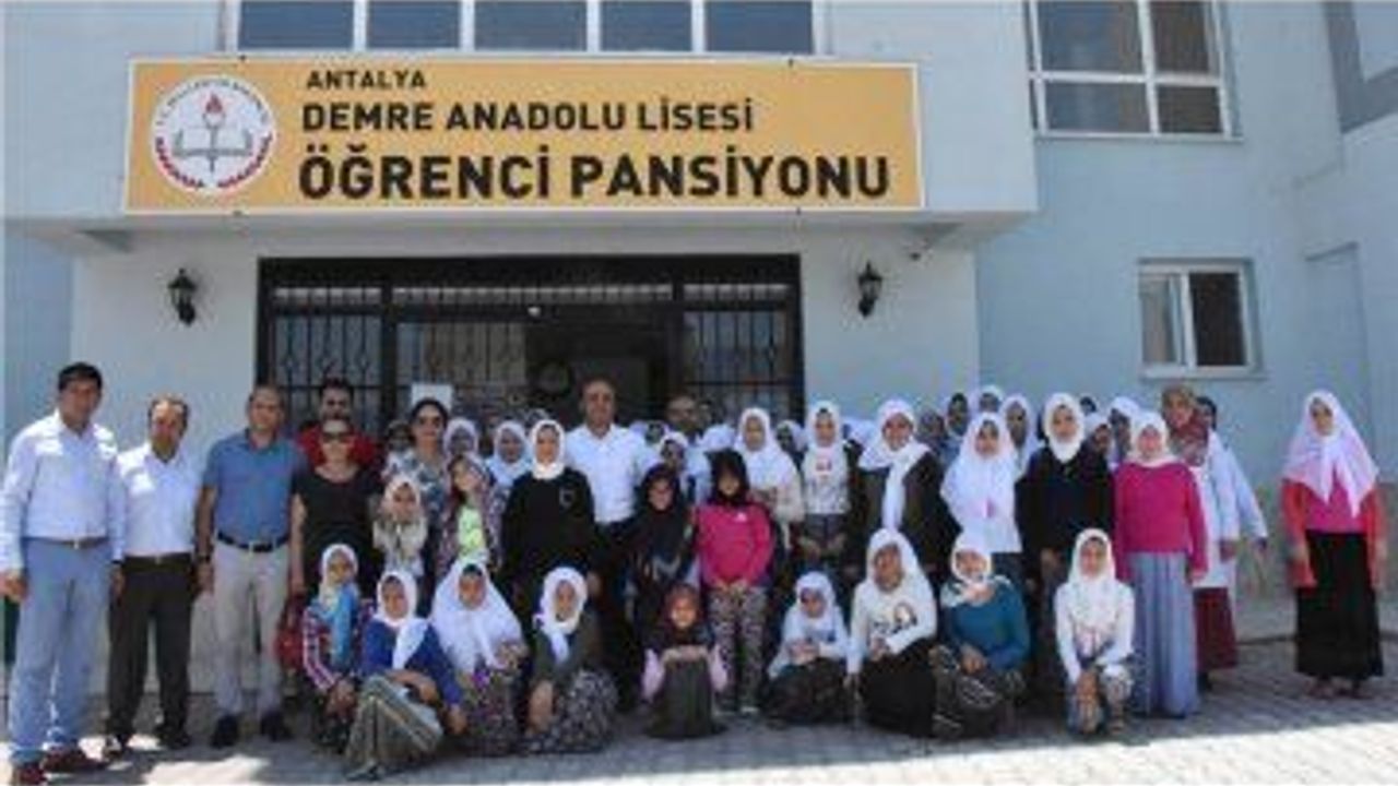 MİLLİ Eğitim Bakanlığı ve Diyanet İşleri Başkanlığı işbirliğiyle Demre'de kız çocuklarına yönelik Kuran kursu, sanat ve spor kursu açıldı.Demre'de başlatılan yaz kurslarına, 100'ü yatılı olmak üzere 120 öğrenci katılıyor. Bir ay sürecek kurslar, Demre Anadolu Lisesi yurdunda düzenleniyor. Öğrencilere, sabahları 3 saat Kuran-ı Kerim dersi verilirken, öğleden sonra ise Demre Halk Eğitim Merkezi Müdürlüğü ile Gençlik ve Spor Müdürlüğü'nce ahşap boyama, basketbol, voleybol ve yakan top kursları veriliyor.
