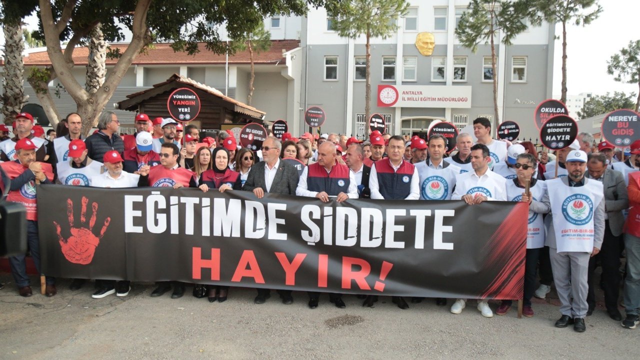 Öğretmenlere yönelik art arda gelen şiddet haberleri sonrasında eğitim sendikaları sokaklara döküldü. Eğitim-Bir-Sen Antalya Şubesi de Antalya İl Milli Eğitim Müdürlüğü önünde eylem yaptı. Eylemde konuşan Eğitim-Bir-Sen Genel Başkan Yardımcısı Mesut Öner, “Eğitimciye şiddetin bireysel suç vakaları olmaktan çıkarak eğitim, aile ve toplum politikalarının kökten sorgulanmasını gerektiren bir iş güvenliği sorununa dönüştüğünü üzülerek müşahede ediyoruz” dedi.
