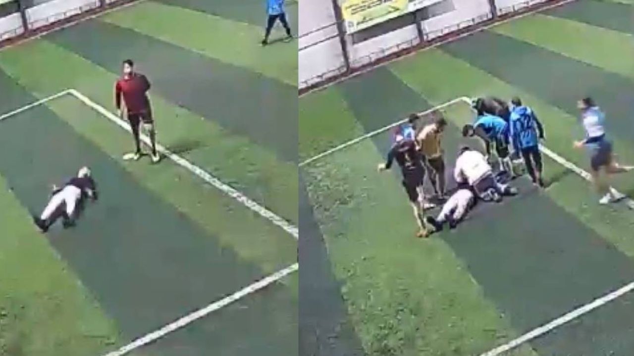 O anlar ise halı sahanın güvenlik kamerasına yansıdı. Görüntüler, kale önündeki şahsın biranda yere düşüp hayatını kaybettiği yer aldı.