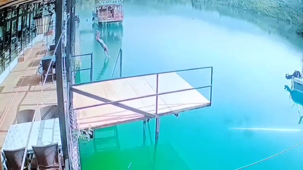 Tolga Demir'in suya girdiği anlar, güvenlik kamerasına yansıdı. Görüntülerde; Tolga Demir'in önce kıyafetlerini çıkardığı ardından demir korkuluklar üzerinden balıklama suya atladığı anlar yer aldı.