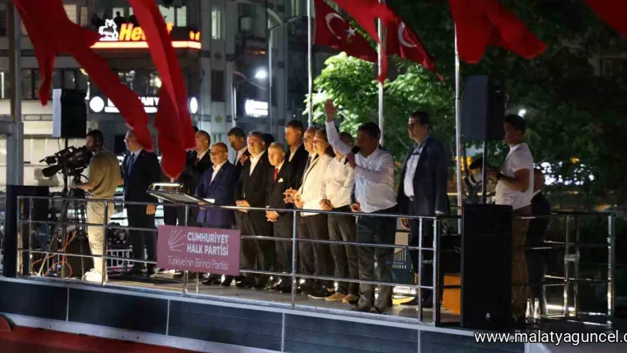 Aydın'da akşam saat 20.00'de düzenlenen miting öncesi konuşan Muğla Büyükşehir Belediye Başkanı Ahmet Aras, partiden istifa eden Aydın Büyükşehir Belediye Başkanı Özlem Çerçioğlu'na ithafen "Aramızda yolunu kaybedenler var" dedi. CHP Aydın İl Başkanı Hikmet Saatçi ise kalabalığa tutuklu bulunan Ekrem İmamoğlu'nun cezaevinden gönderdiği mektubu okudu.