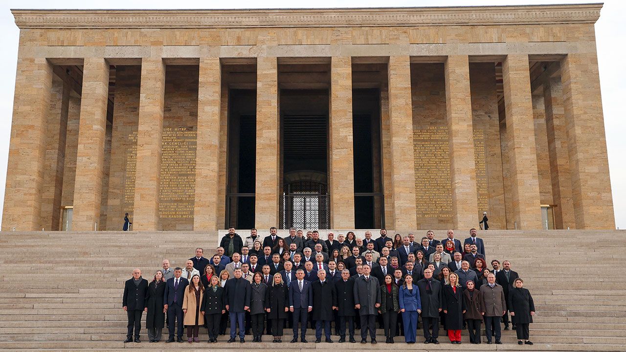 "Partimizin 39'uncu Olağan Kurultayı'nda seçilen Parti Meclisi ve Yüksek Disiplin Kurulu üyelerimiz ile birlikte yeniden huzurunuzdayız. Kurultayımızda yenilenen parti programımız, güncellenen tüzüğümüz ve yeni kadrolarımızla, birlik ve beraberlik içinde geleceğe yürüyoruz. Bugün çoklu krizler yaşayan Cumhuriyetimizi, çağın kuşatmasından kurtarmak; demokrasiyi, hukukun üstünlüğünü, gelirde ve vergide adaleti hakim kılmak için mücadelemizi kararlılıkla sürdürmeye söz veriyoruz. Aziz Atatürk; iki büyük eserinizden biri olan Cumhuriyet Halk Partimiz bugün kapatma tehdidine kadar varan ağır saldırılar altındadır. Partimizin Cumhurbaşkanı adayı, seçilmiş belediye başkanları ve çok sayıda yol arkadaşımız tutukludur. Ancak biz, sizden aldığımız ilham ve milletimizden aldığımız güçle tüm saldırıları boşa çıkaracak ve ülkemizi kuşatmalardan kurtaracak iradeye sahibiz. Size, silah arkadaşlarınıza, Cumhuriyetimizin kurucu kadrolarına şükranlarımızı sunuyor; şehitlerimizi saygı ve rahmetle anıyoruz. Ruhunuz şad olsun."