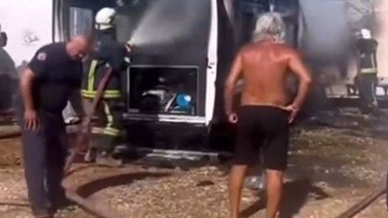 Yangında 2 karavan tamamen yanarak kullanılamaz hale geldi. ?Yangının çıkış nedeni araştırılıyor.