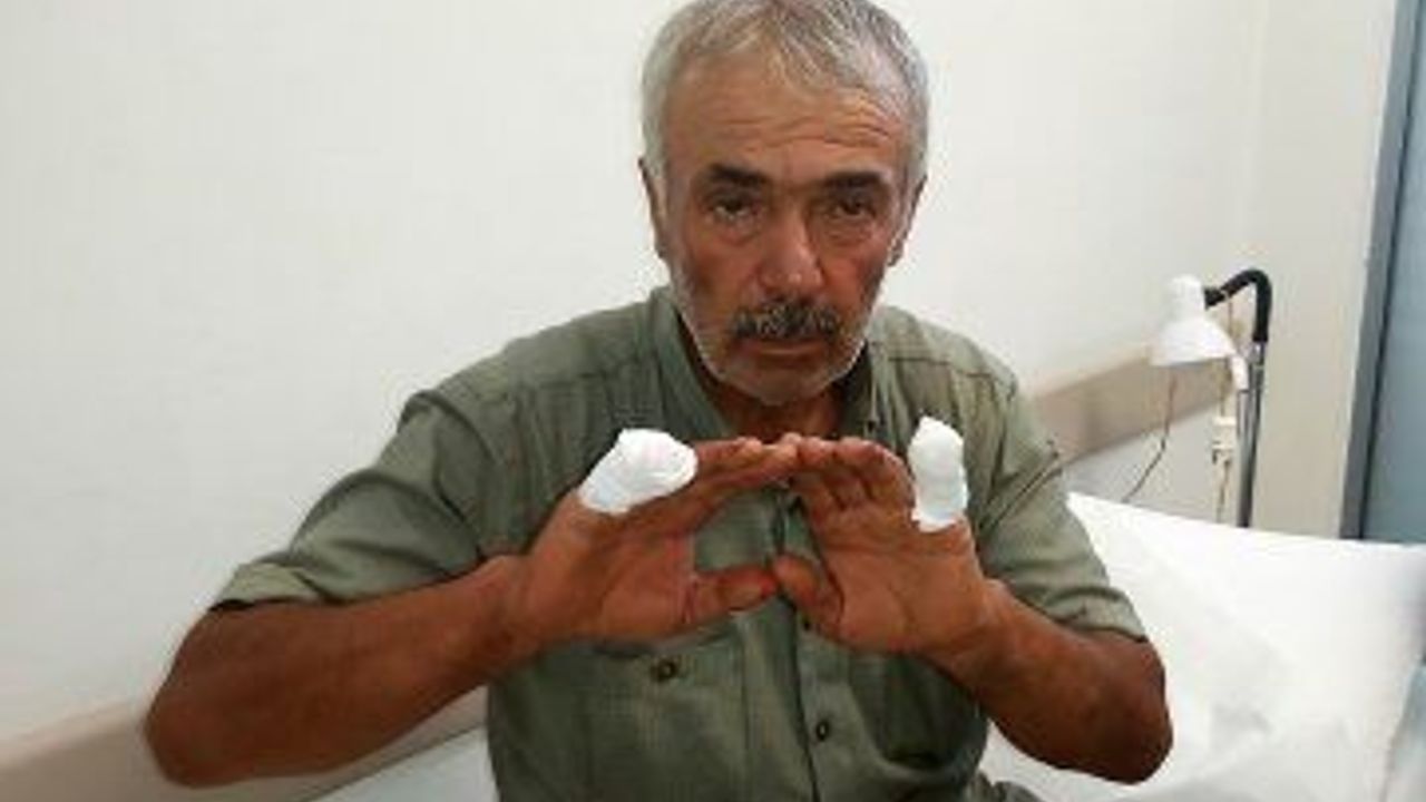 Parmağını kopartan kurdun başına taşla vurup uzaklaştırdı