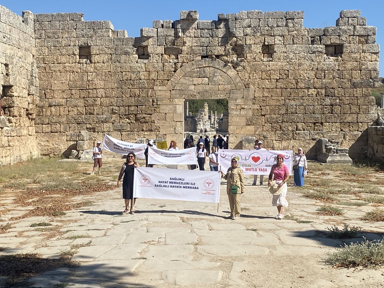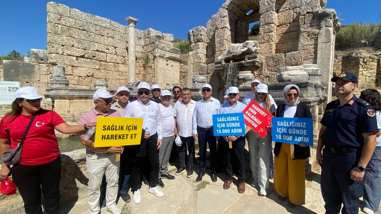 Antalya’nın Aksu ilçesindeki Perge Antik Kenti, Halk Sağlığı Haftası kapsamında düzenlenen farkındalık etkinliğine ev sahipliği yaptı. Katılımcıların rehber eşliğinde tarihi alanı gezdiği programda boy, kilo ve tansiyon ölçümleri yapıldı, sağlıklı yaşamın önemine dikkat çekmek amacıyla yürüyüş gerçekleştirildi. Sağlık Bakanlığı ve Antalya İl Sağlık Müdürlüğü’nün hazırladığı pankartların taşındığı etkinlik, müzik dinletisiyle son buldu.