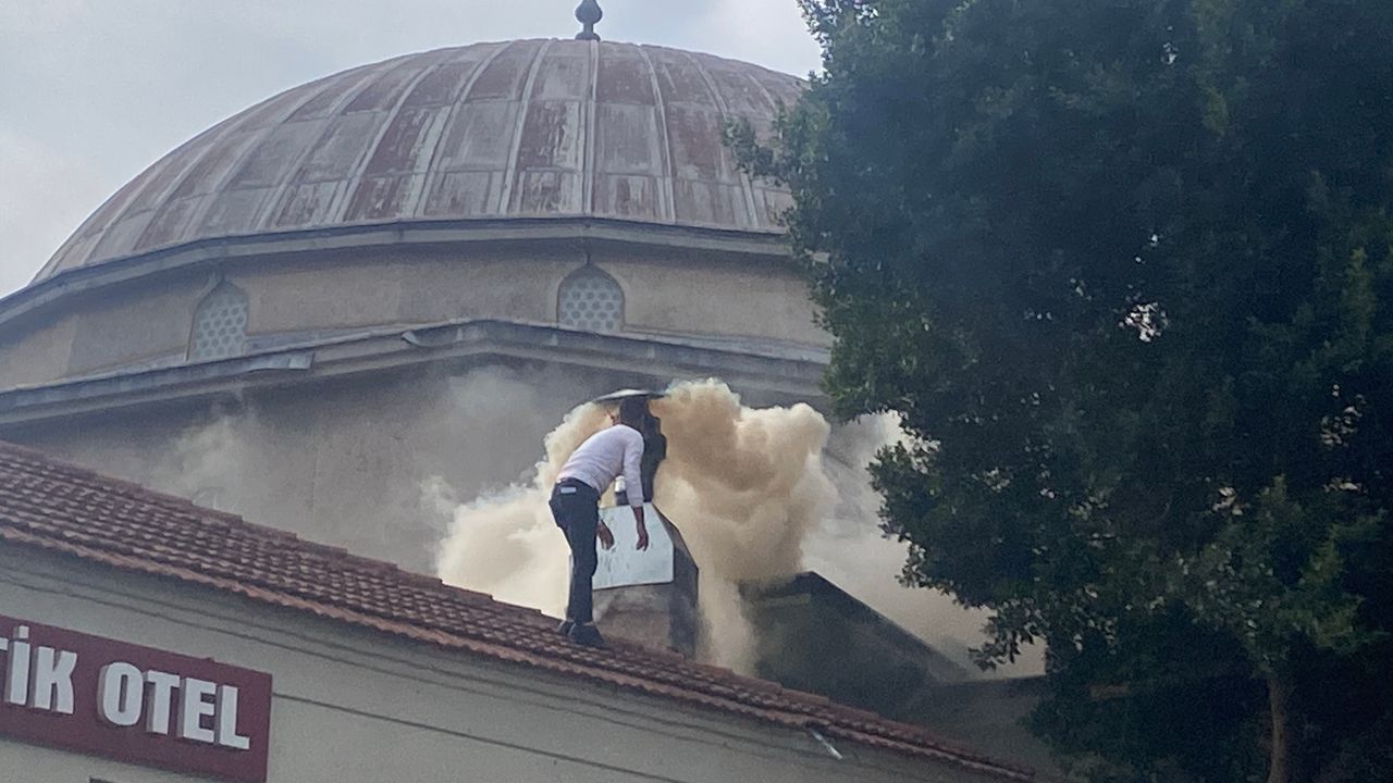 Camiye girmek için bekleyen bazı vatandaşlar ise dumanların azalmasının ardından içeriye girdi.