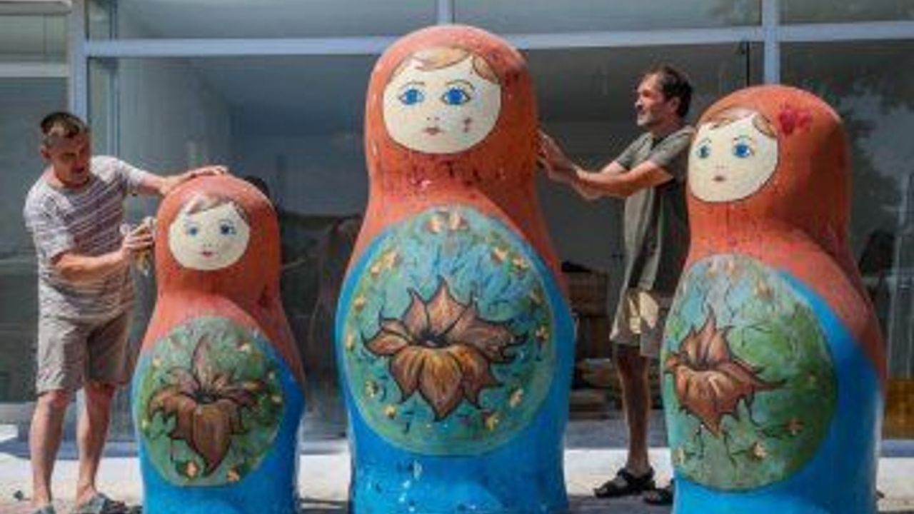 Konyaaltı'da 8 yıl önce açılan Dostluk Parkı'ndaki Rusların geleneksel oyuncak bebek türü 8 matruşka bebekten saldırıya uğrayarak zarar gören 5'i, 2 Rus sanatçı tarafından onarılıyor