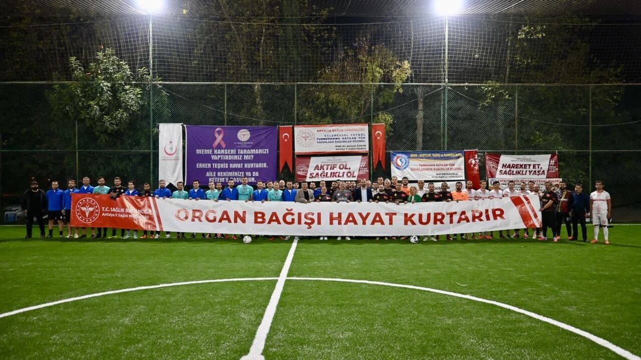 Bu sene 24’üncüsü düzenlenen futbol turnuvası başladı. Turnuvanın açılışını l Sağlık Müdürü Prof. Dr. Behzat Özkan yaptı. İl Sağlık Müdürü Prof. Dr. Behzat Özkan Antalya Sağlık Müdürlüğü 24.Geleneksel Futbol Turnuvasının kurumlar arası dostluğu pekiştirmesini ve centilmenlik çerçevesinde sakatlıklar yaşanmadan geçmesini temenni ederek turnuvaya katılan tüm takımlara başarılar diledi. Tüm sporcular ve katılımcılar; 03-09 Kasım Organ Bağışı Haftası kapsamında “Organ Bağışı Hayat Kurtarır.” pankartı ile sahaya çıkarak “Organlarınız Başka Birine Umut Olsun” mesajını vererek Organ Bağışının önemini vurguladı.