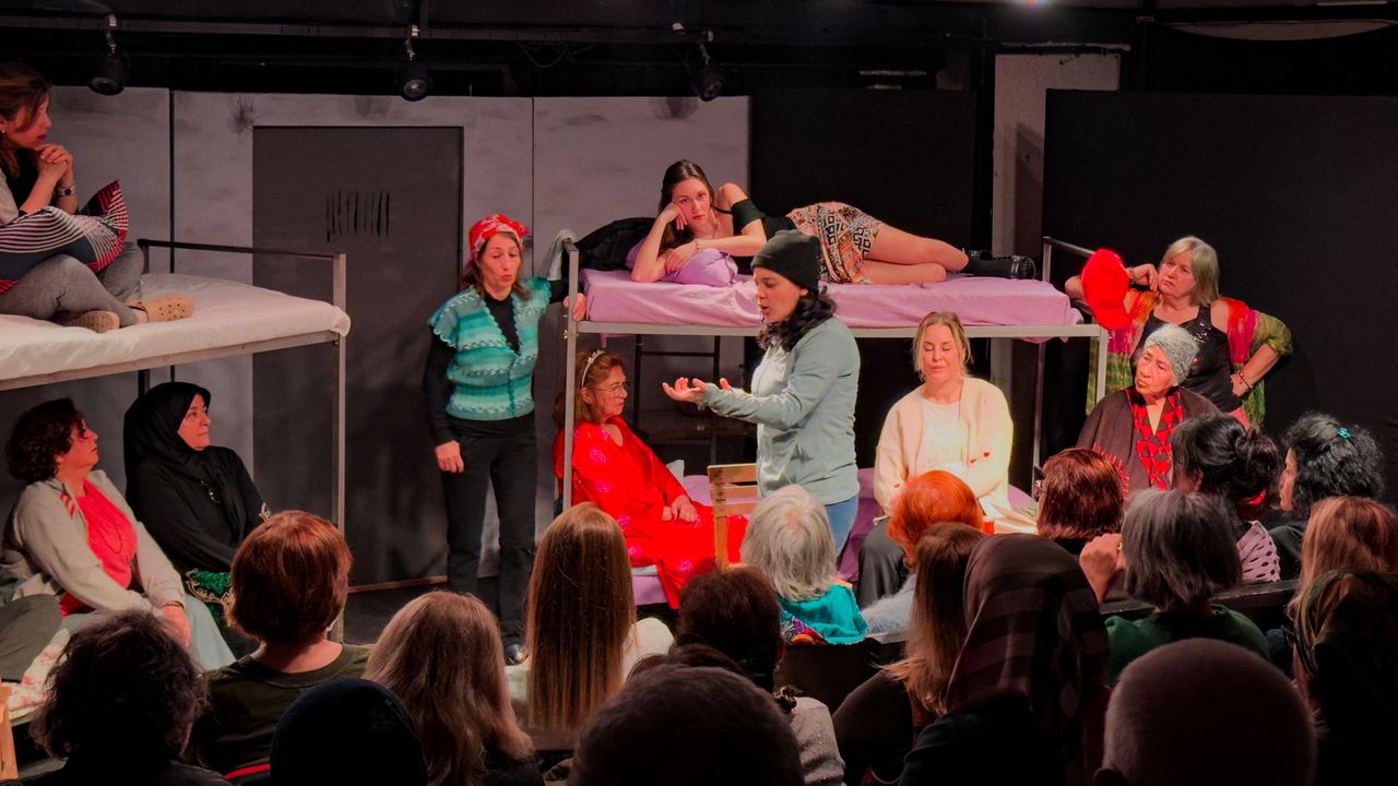 Antalya Kadın Sahnesi Destekleme Derneği bünyesinde çalışılan 'Bir Evet İki Hayır Arasında Hayat' adlı oyun, Kırmızı Kalem Sanat'ın çadır tiyatrosunda sahnelendi. Meryem Nart'ın kaleme aldığı, Samet Seçici ile Simge Ülkü'nün yönettiği gerçek yaşam hikâyesinde Ayşe Cengiz, Ayşe Küçük, Aysun Ağacan, Ayşegül Ünal, Canan Kesin, Emine Nezihat Ballı, Hülya Arı, İclal Neva Nart, Mukaddes Özacar, Mesture Akyüz, Meryem Nart, Nurten Güven Baş, Nurgül Maydos, Nurhan Çobanoğlu, Saniye Özölmezoğlu, Simge Ülkü, Saliha Acıgöz, Şadi Kahraman rol aldı.
