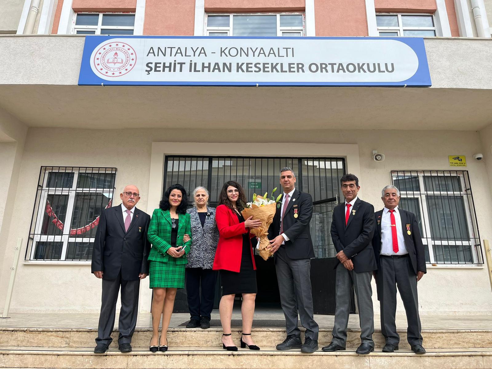 Şehit İlhan Kesekler Ortaokulu’nda görev yapan Gözde Kesekler’i ziyaret eden Türkiye Harp Malulü Gaziler, Şehit Dul ve Yetimler Derneği Antalya Şubesi Başkanı Mehmet Yurdakul, “Babalarının adının verildiği Şehit Jandarma Astsubay Kıdemli Başçavuş İlhan Kesekler Ortaokulu’nda öğretmen olan şehit kızımız Gözde Kesekler’i şehit ailelerimiz ve gazilerimizle ziyaret ederek Öğretmenler Günü’nü kutladık. Şehitlerimizin isimlerini daima yaşatacak ve emanetlerini sonsuza dek hatırlayacağız” ifadelerini kullandı.