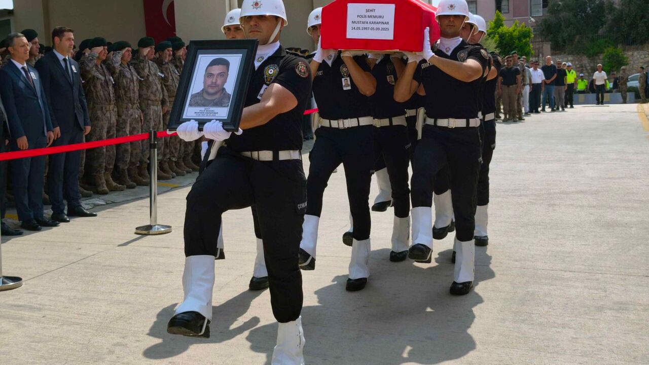 Şehit Mustafa Karapınar için bugün İl Emniyet Müdürlüğü Özel Hareket Şubesi’nde uğurlama töreni yapıldı. Törene, şehidin annesi Fatma Karapınar, kardeşi Aleyna Karapınar, Vali Atilla Toros, İl Emniyet Müdürü Kamil Karabörk, kent protokolü, meslektaşları ve yakınları katıldı.