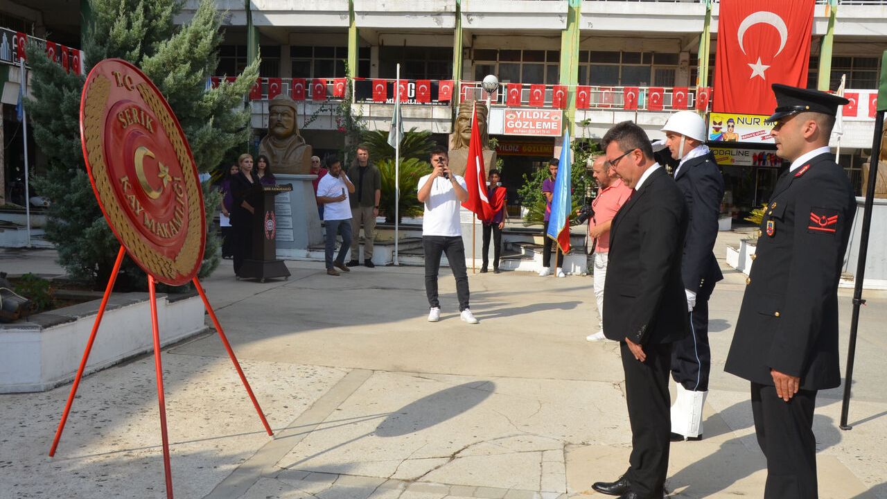 Atatürk Anıtı önünde gerçekleştirilen 30 Ağustos Zafer Bayramı kutlama törenine, Serik Kaymakamı Cemal Şahin, Cumhuriyet Başsavcısı Muhammed Kaan Özel, Serik Belediye Başkan Yardımcısı Mehmet Balık, AK Parti Serik İlçe Başkanı Ahmet Söker, MHP Serik İlçe Başkanı Ahmet Güzel, CHP Serik ilçe Başkanı Şeref Çimen, DSP Serik İlçe Başkanı Yusuf Öztürk, daire müdürleri, sivil toplum kuruluşu temsilcileri katıldı.