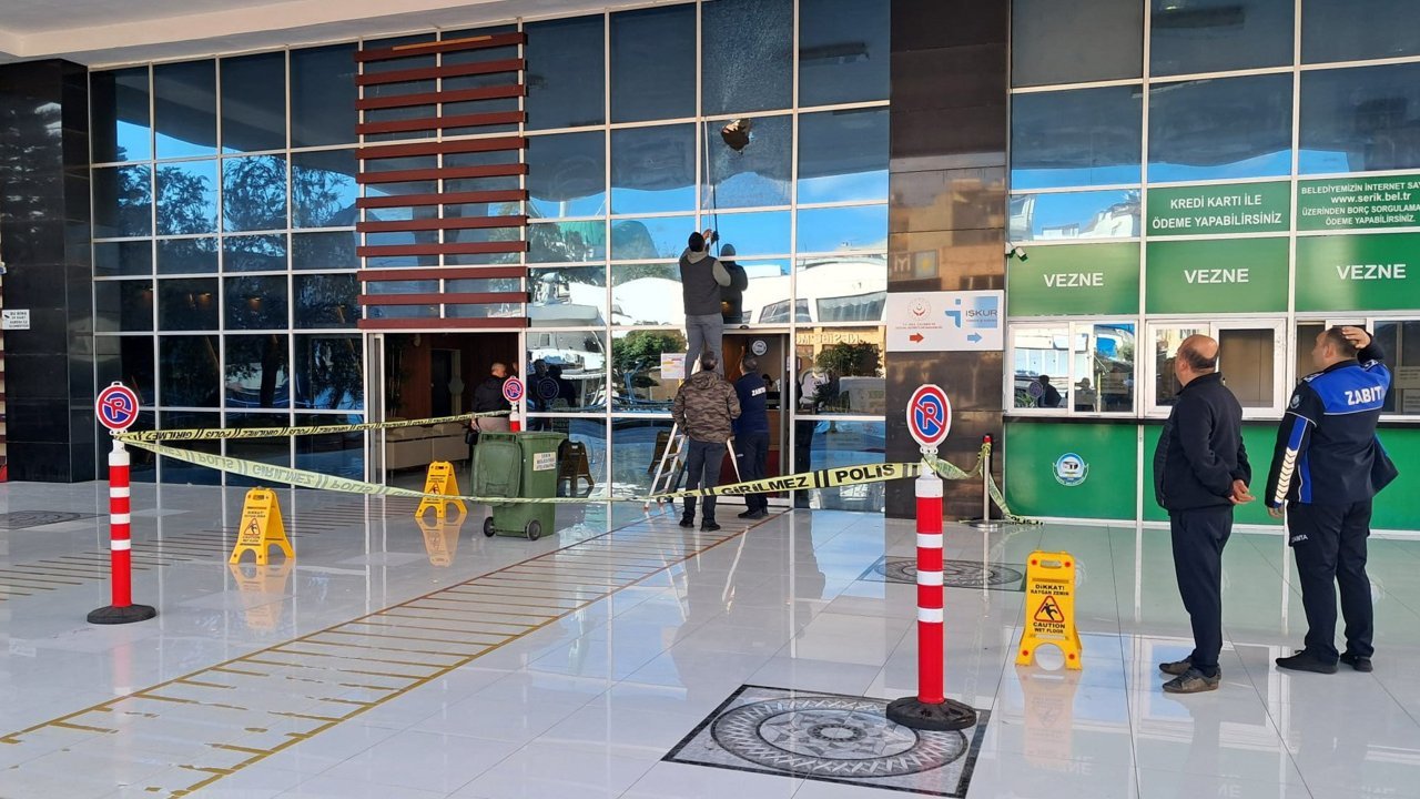 Olay, saat 06.00 sıralarında Serik Belediye binası önünde meydana geldi. Ş.D., motosikletiyle önüne geldiği belediye binasına, yanında bulunan av tüfeğiyle 4 el ateş etti. Binanın giriş kapısı, vezne bölümü ile başkanlık katındaki penceresine saçmalar isabet etti. Belediye binasında nöbet tutan 2 zabıta memuru olaydan yara almadan kurtuldu. Şüpheli, saldırının ardından motosikletini olay yerinde bırakarak kaçtı.