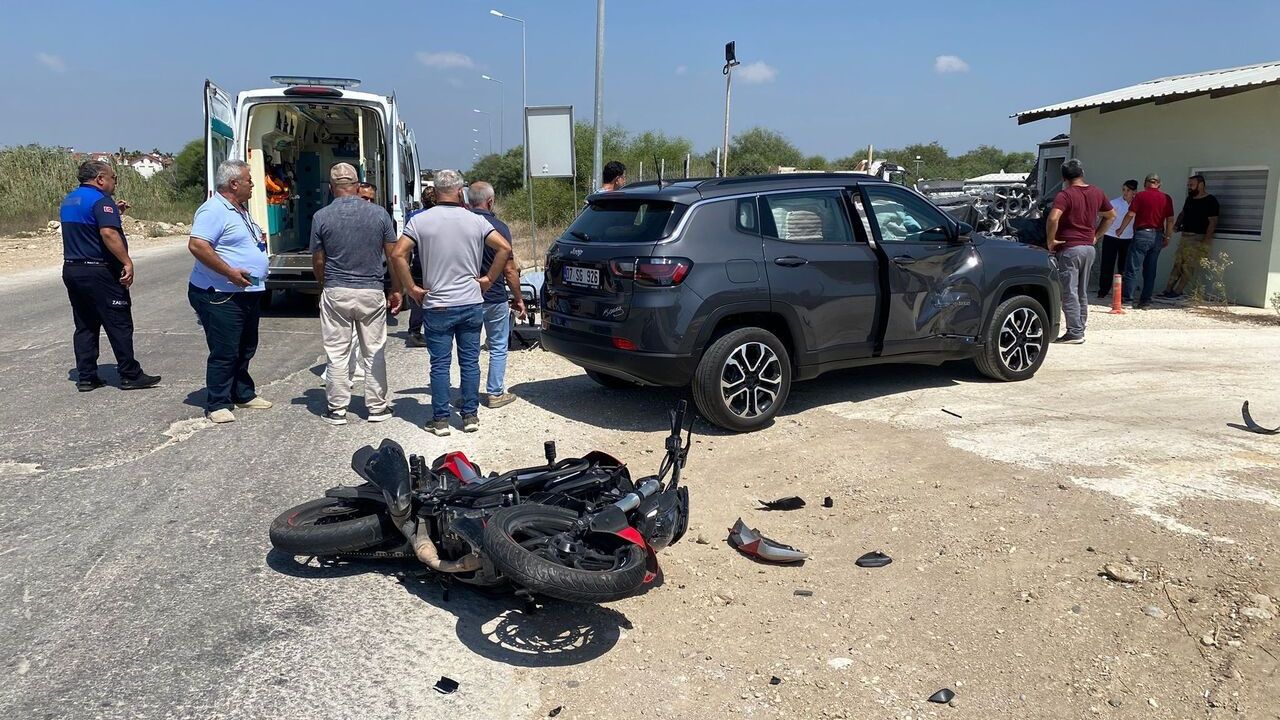Kaza, bugün öğlen saatlerinde Belek Mahallesi'nde meydana geldi. Edinilen bilgiye göre Seyit B. (55) yönetimindeki motosiklet, sürücüsü öğrenilemeyen 07 SG 926 plakalı cip ile çarpıştı. Kazada motosiklet sürücüsü yaralandı. Olayın ardından bölgeye polis ve 112 sağlık ekipleri sevk edildi.