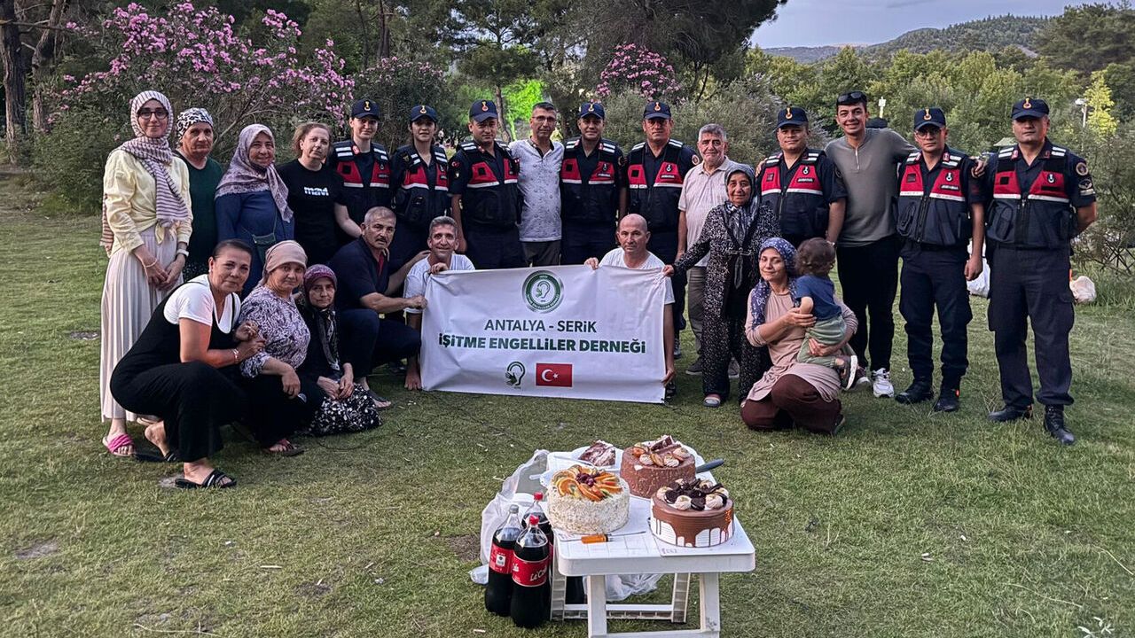 Serik İşitme Engelliler Derneği üyeleri, Serik İlçe Jandarma Komutanlığı'na 'kavga var' şeklinde ihbarda bulundu. Olay yerine hızla ulaşan jandarma ekipleri, kendilerini çiçeklerle bekleyen dernek üyeleriyle karşılaştı. Dernek üyeleri, jandarma personelini alkış ve çiçeklerle karşılayarak Jandarma Teşkilatı'nın 186'ncı kuruluş yıl dönümünü kutladı. Etkinlikte dernek üyeleri jandarmaya olan minnetlerini dile getirdi.