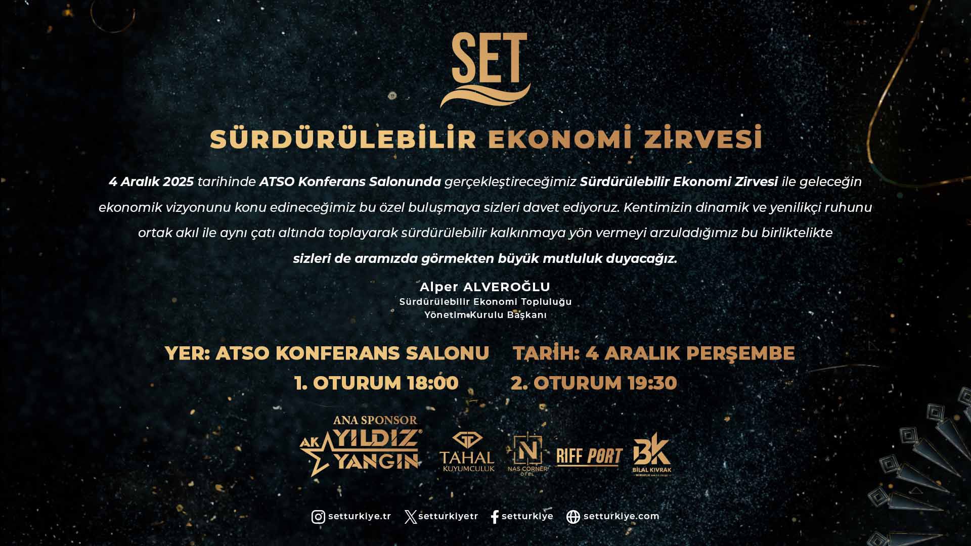 Sürdürülebilir Ekonomi Topluluğu’nun lansman projelerinden olan Sürdürülebilir Ekonomi Zirvesi, 4 Aralık Perşembe günü Antalya Ticaret ve Sanayi Odası binasında bulunan konferans salonunda gerçekleşecek. Birbirinden seçkin katılımcılar ve alanında yetkin isimlerin Antalya ekonomisi ve Türkiye’nin finans değerlerini değerlendireceği bu önemli toplantıya iş ve ekonomi dünyasından çok sayıda önemli isim katılacak.