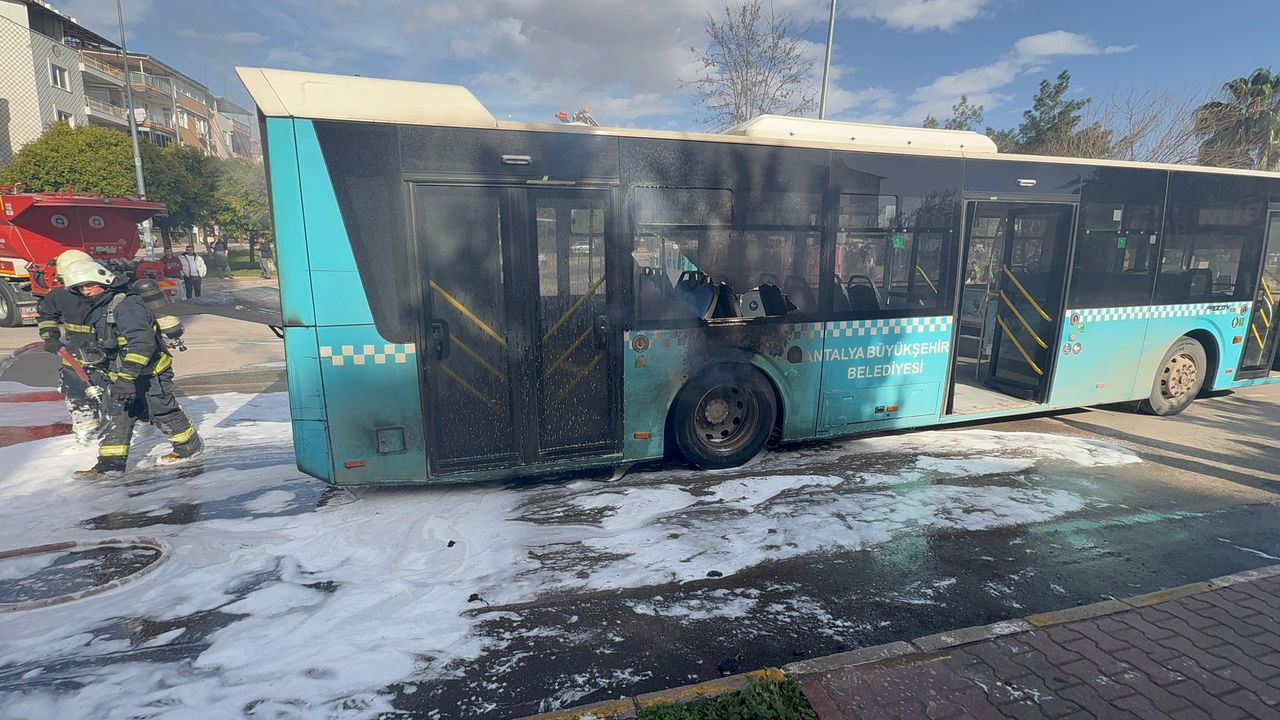 Gülveren Mahallesi Antalyalı Hakkı Çavuş Caddesi’nde bugün saat 14.30 sıralarında Ferit Yıldırım yönetimindeki 07 AAK 658 plakalı Antalya Büyükşehir Belediyesi'ne bağlı halk otobüsü, yolcu almak için durağa yanaştı. Bu sırada otobüsün arka kısmında bulunan motor bölümünden duman yükselmeye başladı. Yangını fark eden sürücü Yıldırım, 3 yolcusuyla araçtan inip yangın tüpüyle alevlere müdahale etmeye çalıştı. İhbar üzerine bölgeye sevk edilen itfaiye ekipleri, alevlere müdahale ederek yangını söndürdü. Yangında otobüste zarar oluştu. Yangın nedeniyle cadde kısa süreliğine trafiğe kapatıldı.