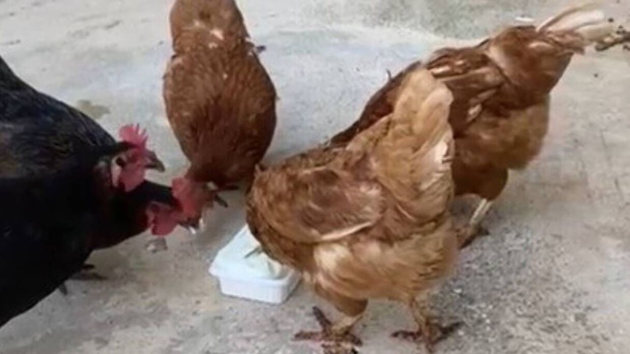 Tavukların dondurmayı yediği görüntüler ise ilgi gördü. Görüntülerde tavukların dondurmayı büyük iştahla yemesi dikkat çekti.