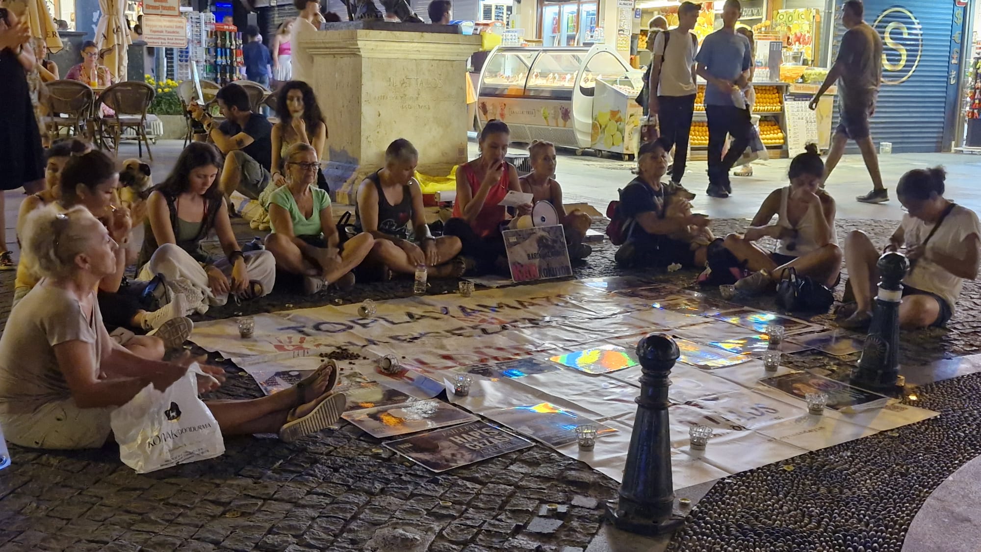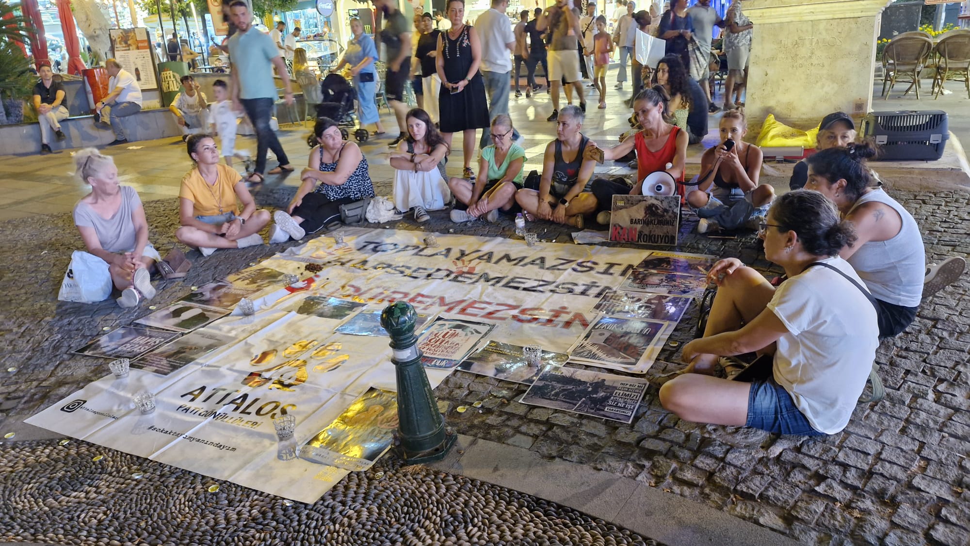 Antalya’da Attalos Heykeli önünde bir araya gelen Antalya Attalos Pati Gönüllüleri, kamuoyunda “katliam yasası” olarak bilinen sokak hayvanlarının uyutulmasını öngören yasa teklifinin 1. yıl dönümünde oturma eylemi düzenledi. Gönüllü aktivist Özlem Gezirici öncülüğünde gerçekleşen eylemde, sokakta katledilen hayvanlar için mumlar yakıldı.