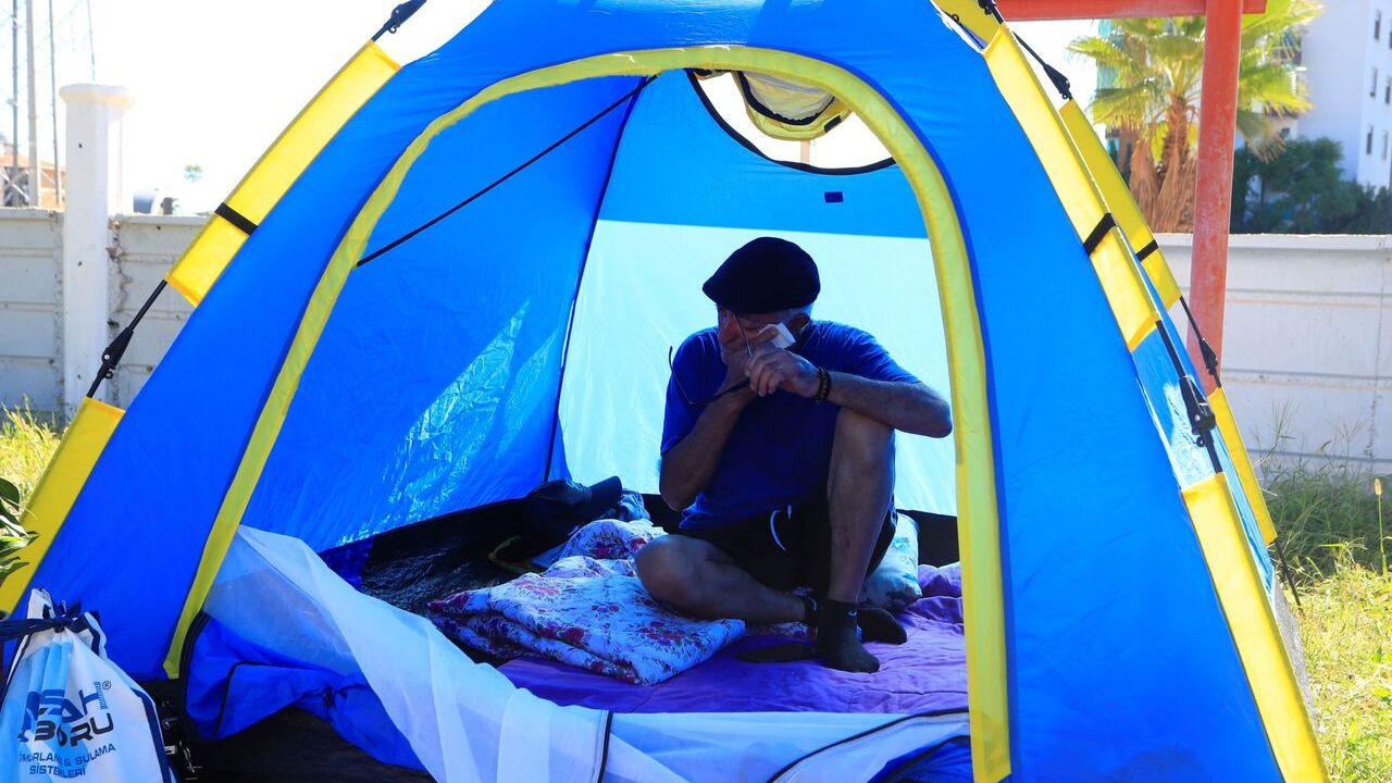 Bu olayın sonucunda çıkan tartışmada eşine bir tokat vurarak evden kovduğunu söyleyen Necdet T, "Bir gün sonra kapımı polisler çaldı. Eşimin darp raporu alarak uzaklaştırma kararı aldırdığını ve evi terk etmem gerektiğini söylediler. Bir haftadır dışardayım. Beni aldatma ilişkisini asla kabul edemem. Eşyalarımı istedim vermedi. Yasağı ihlal etmemek için mahallenin çocuklarını gönderdim. Çocukları azarlayıp kovdu. En son dün 112'yi aradım. Ekim ayında olduğumuzu üşüdüğümü, yardım etmelerini istedim. 2 polis memuru geldi, durumumu onlara da izah ettim. Gidip eşyalarımı aldılar. Birlikte eşyaları indirdik. Buraya getirdim, çadırı kurdum. Çöpten bulduğum kovaya su doldurup güneşe koyuyorum. Ilıklaşınca başımı yıkıyorum" dedi.