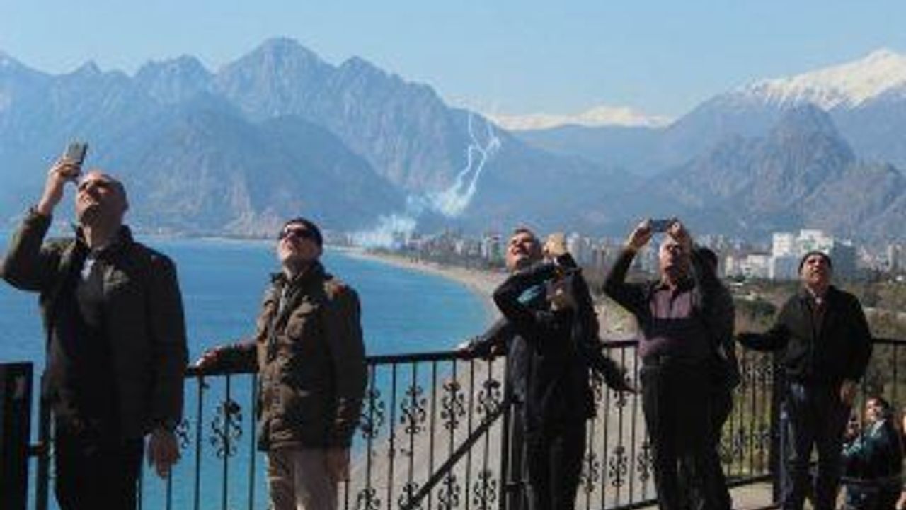 Antalya'nın fethinin 812. yıldönümü etkinlikleri kapsamında 3 Mart Pazar günü gösteri yapacak olan SOLOTÜRK, Konyaaltı Sahili ve Karaalioğlu Parkı falez açıklarında deneme uçuşu gerçekleştirdi. Prova uçuşunu izleyenler, fotoğraf ve görüntü çekmeye çalıştı. Alçak uçuşlar da gerçekleştiren ekibe, izleyenler alkışlarla destek verdi. Yaklaşık 15 dakika süren prova gösterisini Antalyalılar ilgiyle izledi. SOLOTÜRK ekibi, 3 Mart'ta Konyaaltı Sahili'nde gösteri yapacak. (İHA)