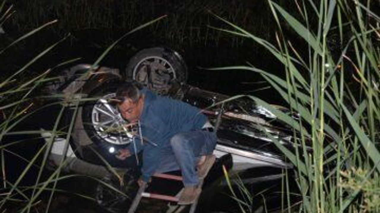 Sulama kanalına gömülen otomobilden kendi kurtuldu