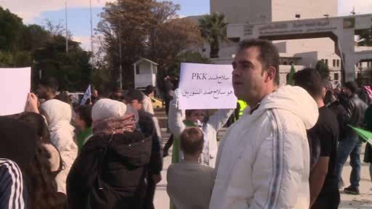 Suriye’de Esad rejiminin devrilmesinin ardından yeni Devlet Başkanı Ahmed eş-Şara, ülkede birlik, beraberlik ve huzur mesajları veriyor. Ülkede herhangi bir terör örgütüne izin verilmeyeceği yönünde açıklamalar gelirken, başkent Şam’da bugün terör örgütleri protesto edildi. Emevi Meydanı’nda toplanan Suriyeliler, attıkları sloganlarla terör örgütü PKK/YPG ve Suriye Demokratik Güçleri’ne tepki gösterdi. Eylemde göstericiler, "PKK, Suriyelilere doğrultulan bir silahtır", "Biz Kuzeydoğu Suriye değil; Rakka, Haseki ve Deyrizoruz", "PKK’nın ırkçılığı=Esad’ın ırkçılığı", "SDG, Esad’dan daha kötü" yazılı pankartlar taşıdı.