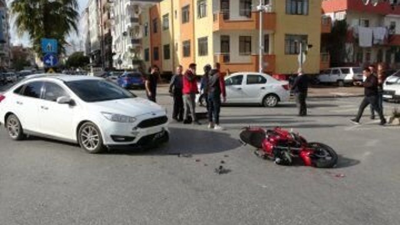 Edinilen bilgiye göre; Çetin Emeç Caddesi Demokrasi Bulvarı üzerinde Mükremin Korkmaz'ın kullandığı 07 ALK 760 plakalı motosiklet, Emre Karaaslan'ın kullandığı 07 AVA 003 plakalı otomobile çarptı. Kaza sonucunda yaralanan motosiklet sürücüsü, sağlık ekiplerinin müdahalesinin ardından ambulansla hastaneye kaldırıldı.