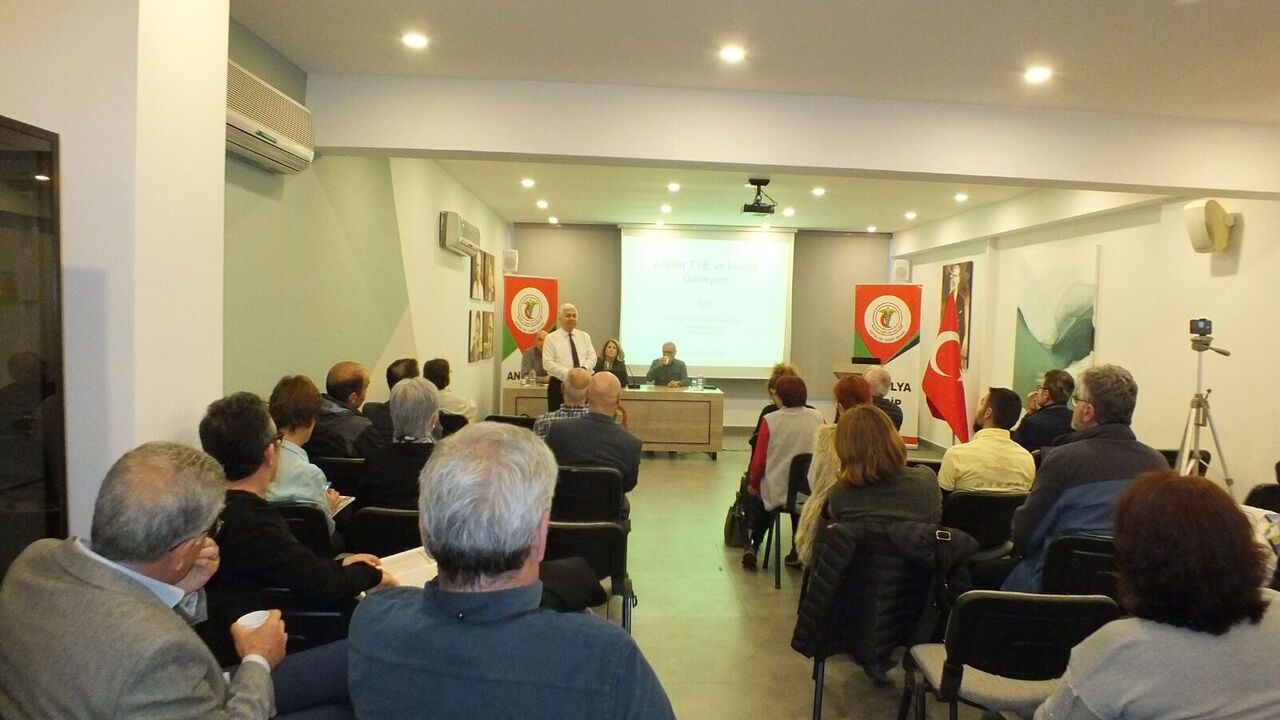 ANTALYA Tabip Odası (TTB), ‘Deprem Politikaları, Afetler’ başlıklı panel düzenledi. Panelin moderatörlüğünü TTB MK Üyesi Prof. Dr. Nursel Şahin yaptı. Panele, Halk Sağlığı Uzmanı Prof. Dr. Ali Osman Karababa ‘Afetler, TTB ve Maraş Gözlemleri’ ve Akdeniz Üniversitesi İnşaat Mühendisliği Bölümü Geoteknik Öğretim Üyesi Jeoloji Mühendisi Prof. Dr. Nihat Dipova ise ‘Türkiye’de ve Antalya’da Deprem Politikaları’ başlıklı konuşmalarıyla yer aldı.