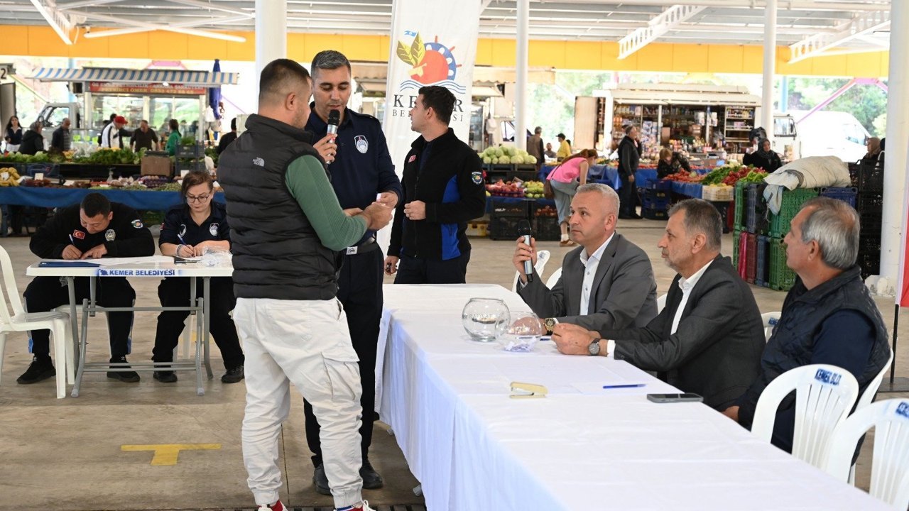 Kura çekimine, Kemer Belediye Meclis Üyeleri Mustafa Bilici ile Mustafa Çelik, Kemer Belediye Tekirova Mahalle Sorumlusu Recep Yılmaz, Kemer Belediye Zabıta Müdürü Erhan Kurtoğlu ve pazar esnafı katıldı.