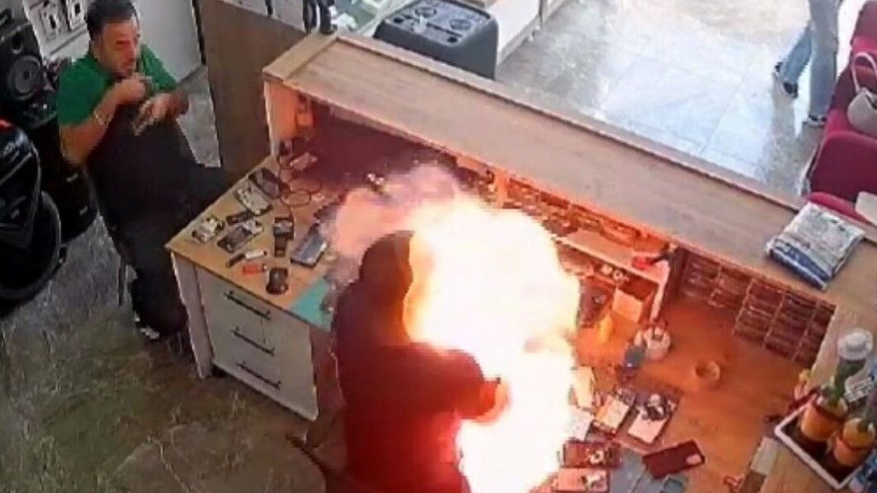 Olay, Aksaray’ın Ortaköy ilçesinde bir telefon tamircisinde yaşandı. Edinilen bilgiye göre, telefon tamircisi Ferhat Özkan (31) müşterisinden gelen telefonun bataryasını değiştirmek istedi. Telefonun kapağını söken Özkan, tam bataryayı çıkartmaya çalışırken batarya bomba gibi patladı. Alev topuna dönen batarya Özkan’ın çeşitli yerlerinde de yanıklara neden olurken, patlama anı iş yerinin güvenlik kamerasına yansıdı.