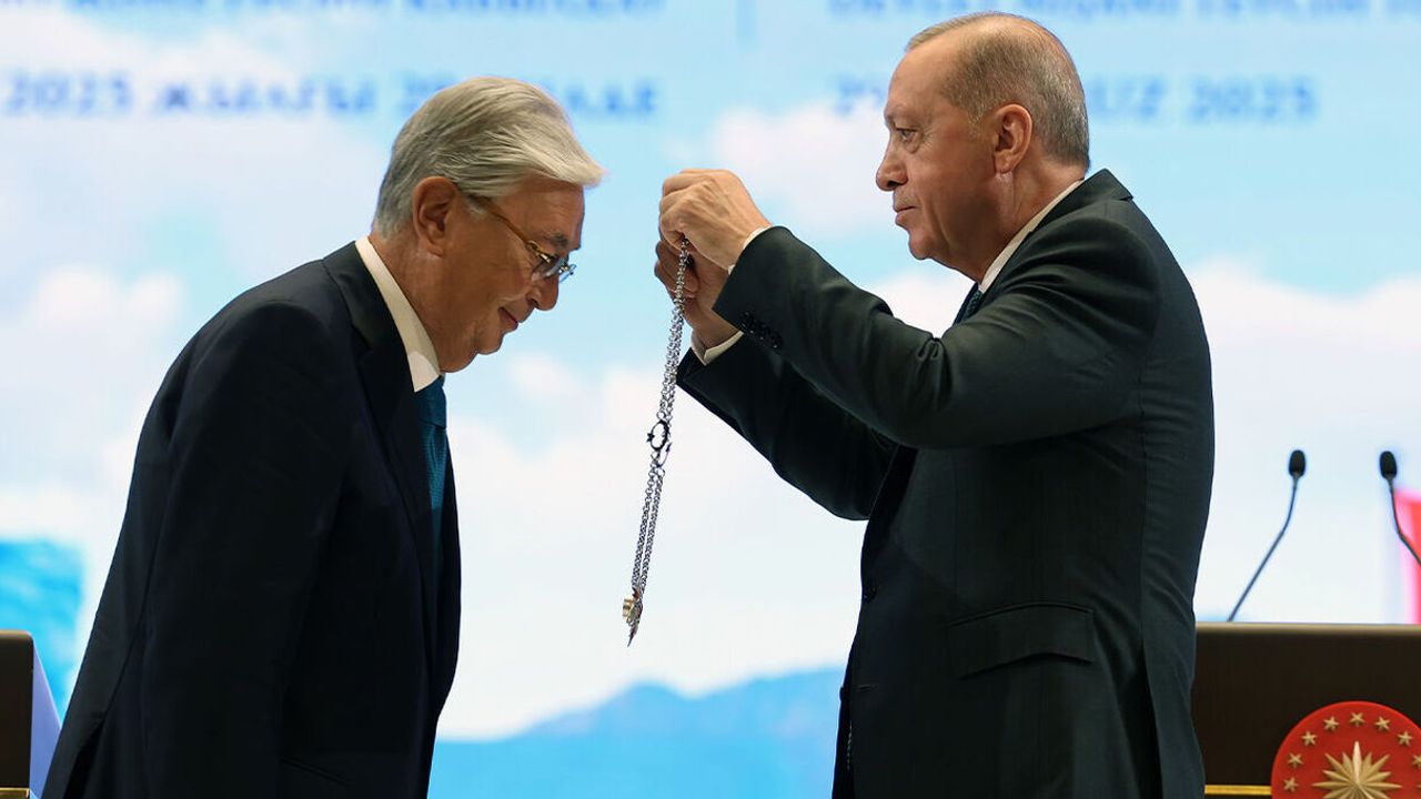Cumhurbaşkanı Recep Tayyip Erdoğan tarafından Kazakistan Cumhurbaşkanı Kasım Cömert Tokayev’e, Cumhurbaşkanlığı Külliyesi’nde düzenlenen törenle Türkiye Cumhuriyeti Devlet Nişanı tevcih edildi.