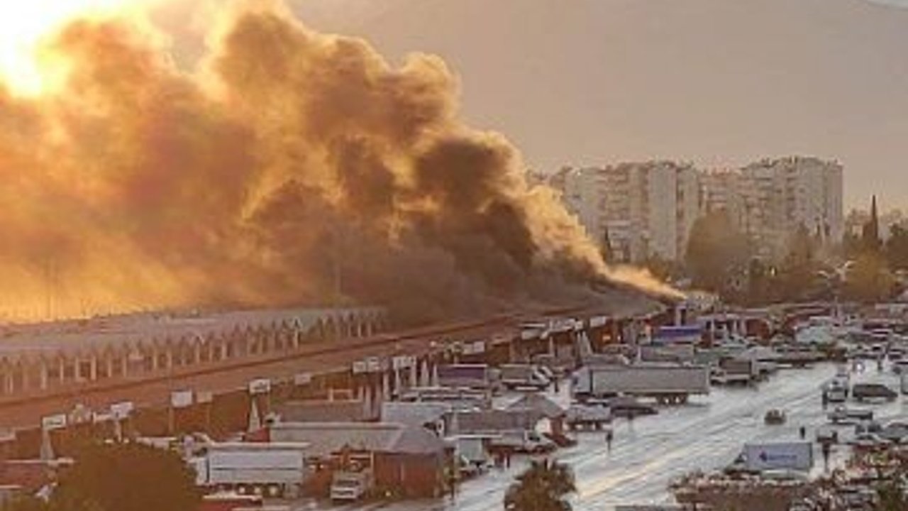 Antalya Toptancı Hali'nde lastik kasaların yanmasıyla çıkan yangında, çok miktarda sebze ve meyve zarar gördü